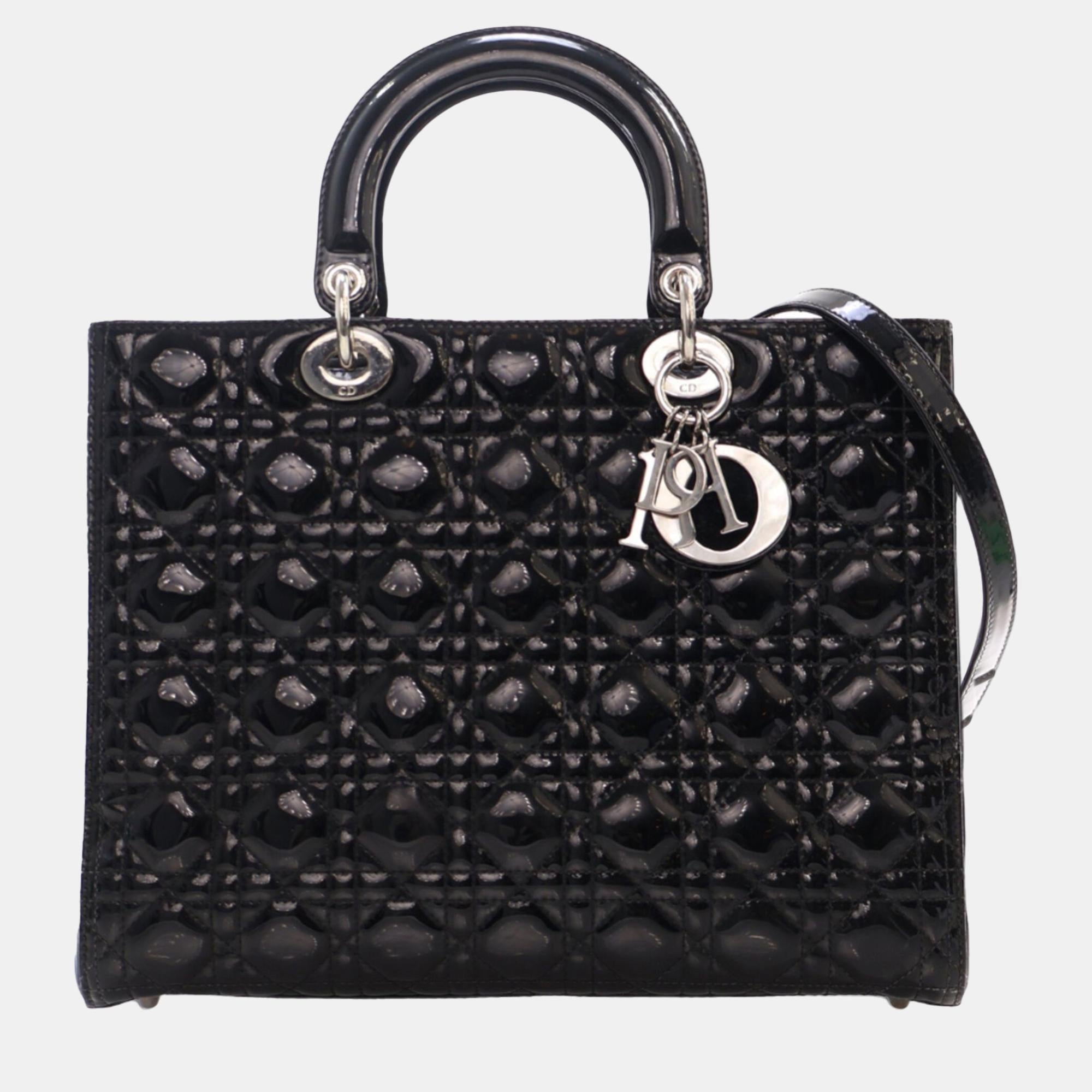 Discover the exquisite Dior Black Large Patent Cannage Lady Dior, a quintessential piece in designer luxury handbags. Crafted from high-quality patent leather, this bag showcases the iconic Cannage pattern, combining elegance with practicality. Ideal for any occasion, it offers ample space for your essentials while maintaining a chic silhouette. Use our price comparison tool to buy luxury handbags online and find the best deals without compromising quality. With Dior's reputation for craftsmanship and style, you can trust our site to provide expert insights and reliable information. Elevate your wardrobe with this timeless handbag today.