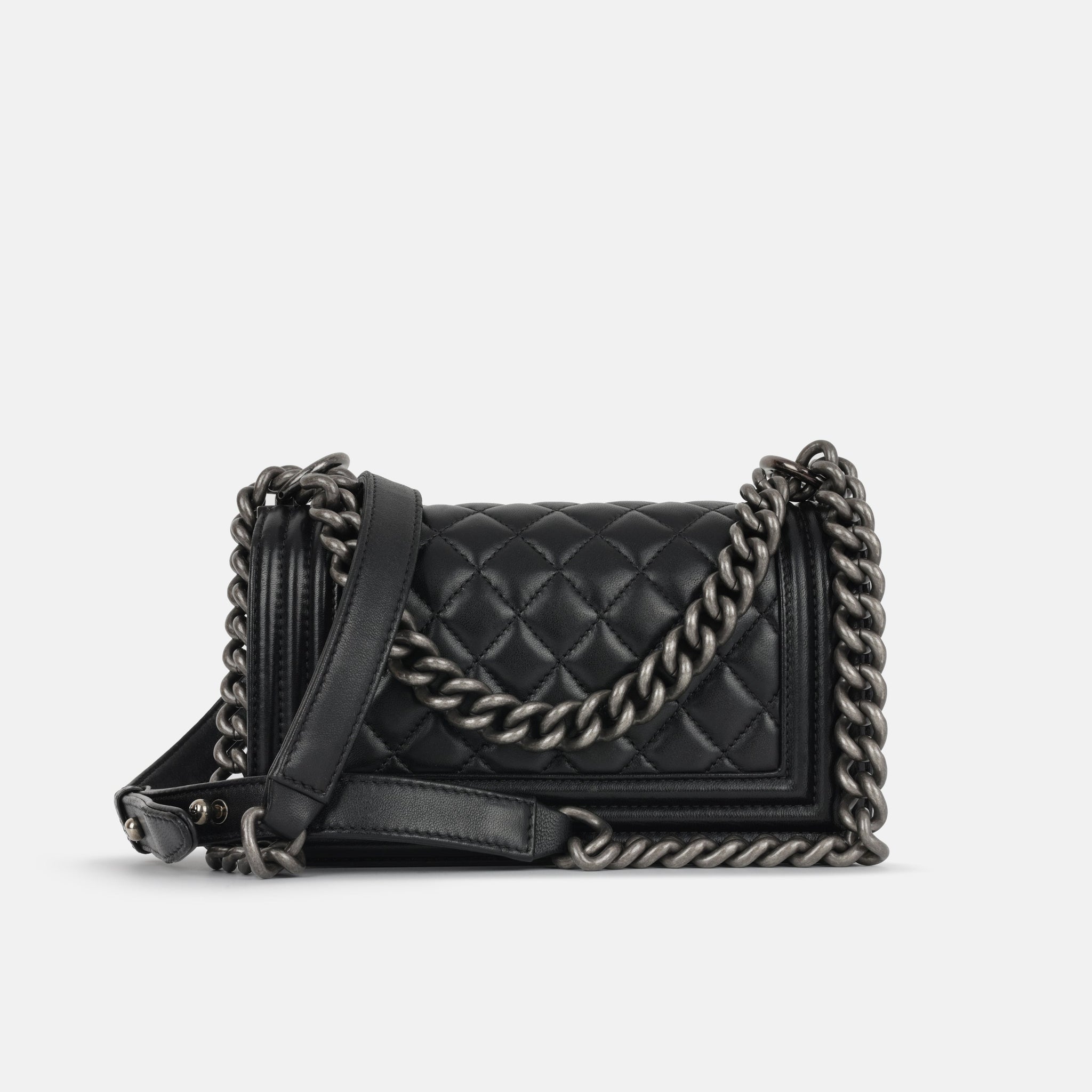 The ‘Boy’ bag, first introduced in 2011 and named after Coco Chanel’s lifetime love, is part of their iconic collection. Crafted from black lambskin leather, ruthenium hardware and can be with the chain doubled up over the shoulder for an evening look or wear cross-body for a more casual style.
