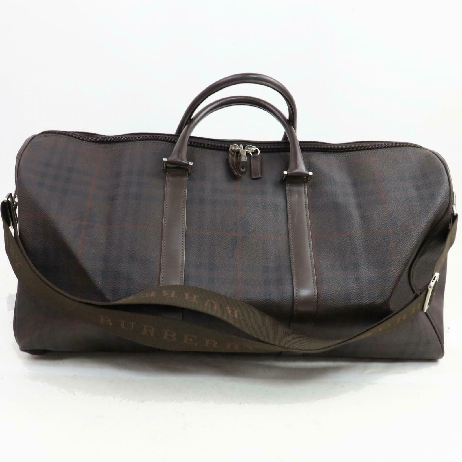 This is an Brand Inspired Burberry London Boston Bag Dark Brown PVC Handbag. All photos are of actual Burberry handbag being sold. This item is in good condition, and will have visible signs of wear and/or use. Please view photos carefully for details. Pay close attention to sizes and measurements. Dimensions (HxWxD): 9.84" H x 9.44" W x 20.4" D. This item ships through LuxeDH from Japan - expect delivery within 4-8 business days.