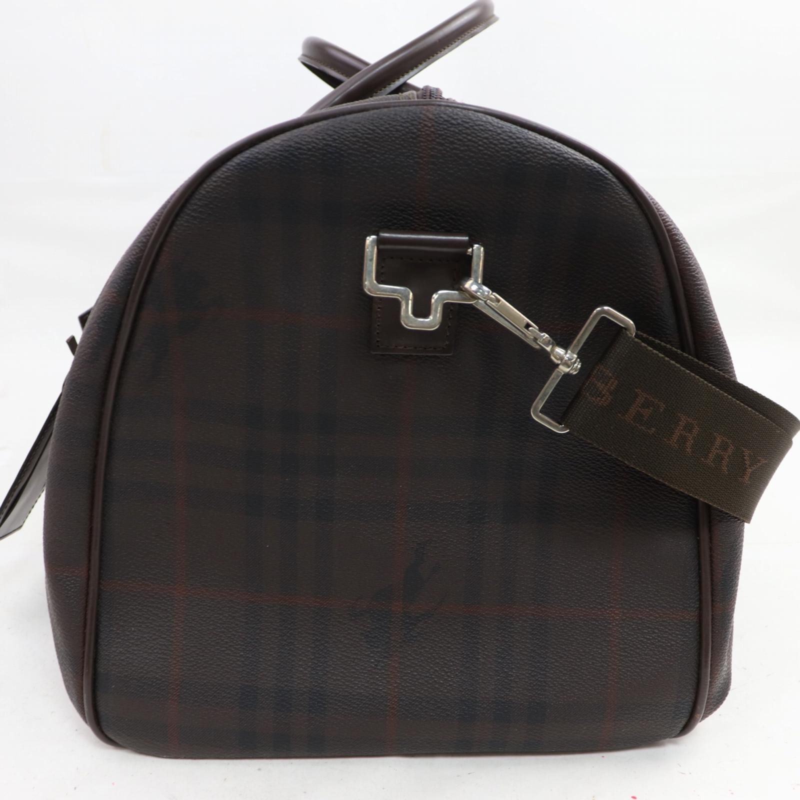 This is an Brand Inspired Burberry London Boston Bag Dark Brown PVC Handbag. All photos are of actual Burberry handbag being sold. This item is in good condition, and will have visible signs of wear and/or use. Please view photos carefully for details. Pay close attention to sizes and measurements. Dimensions (HxWxD): 9.84" H x 9.44" W x 20.4" D. This item ships through LuxeDH from Japan - expect delivery within 4-8 business days.