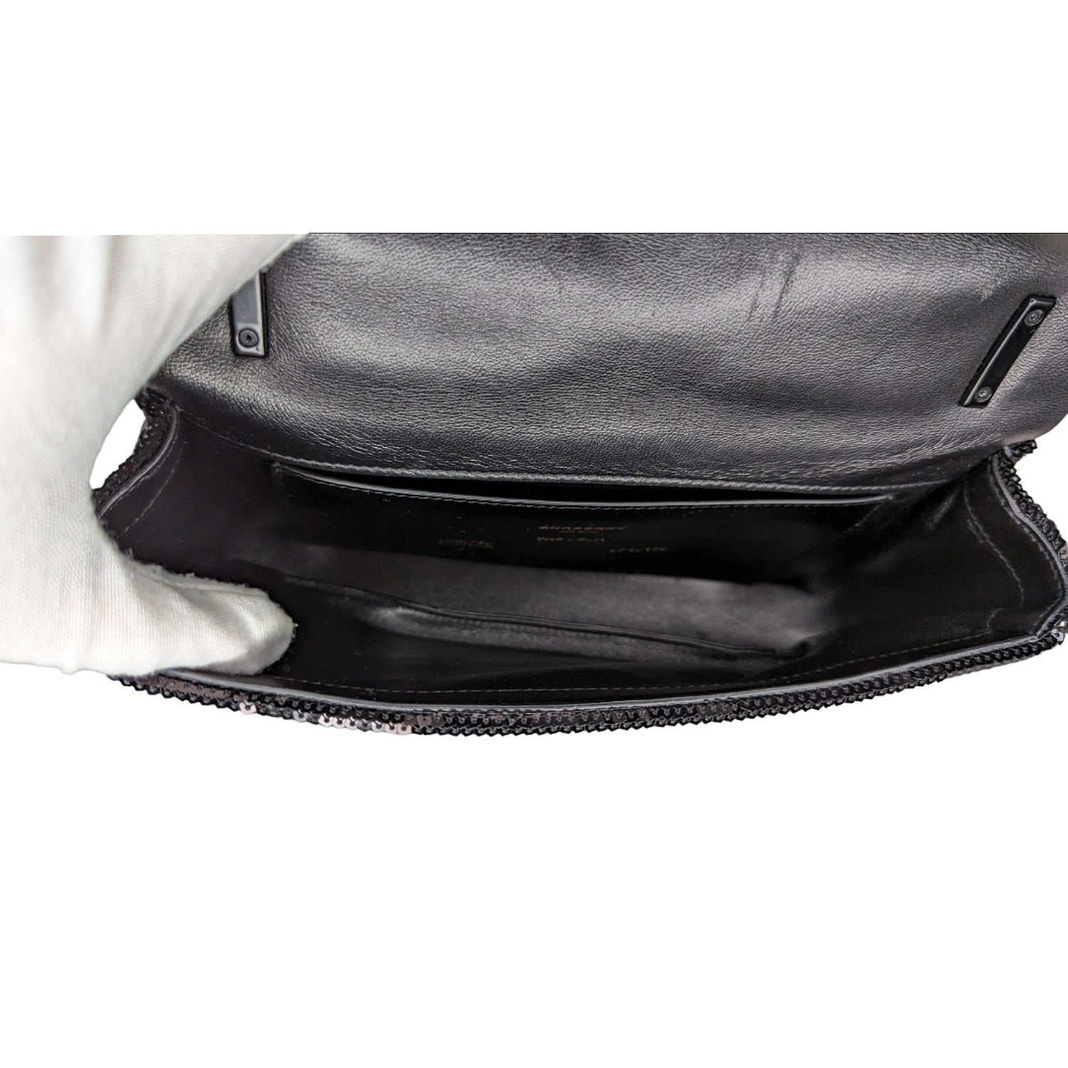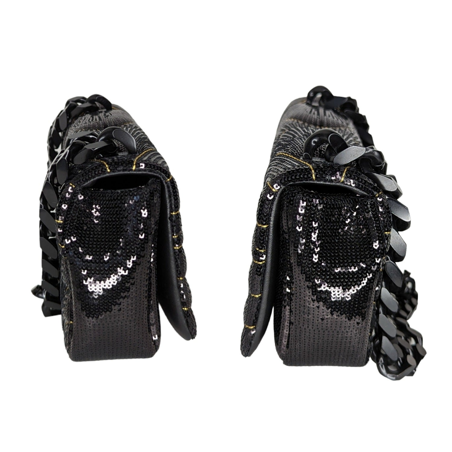 Burberry "Lola'' shoulder bag in all over quilted, topstitched sequins fabric and lambskin leather. Features Thomas Burberry monogram on front, tonal chunky chain shoulder strap, flap top with magnetic closure, leather interior lining with one slip pocket. Retail price $3,450.