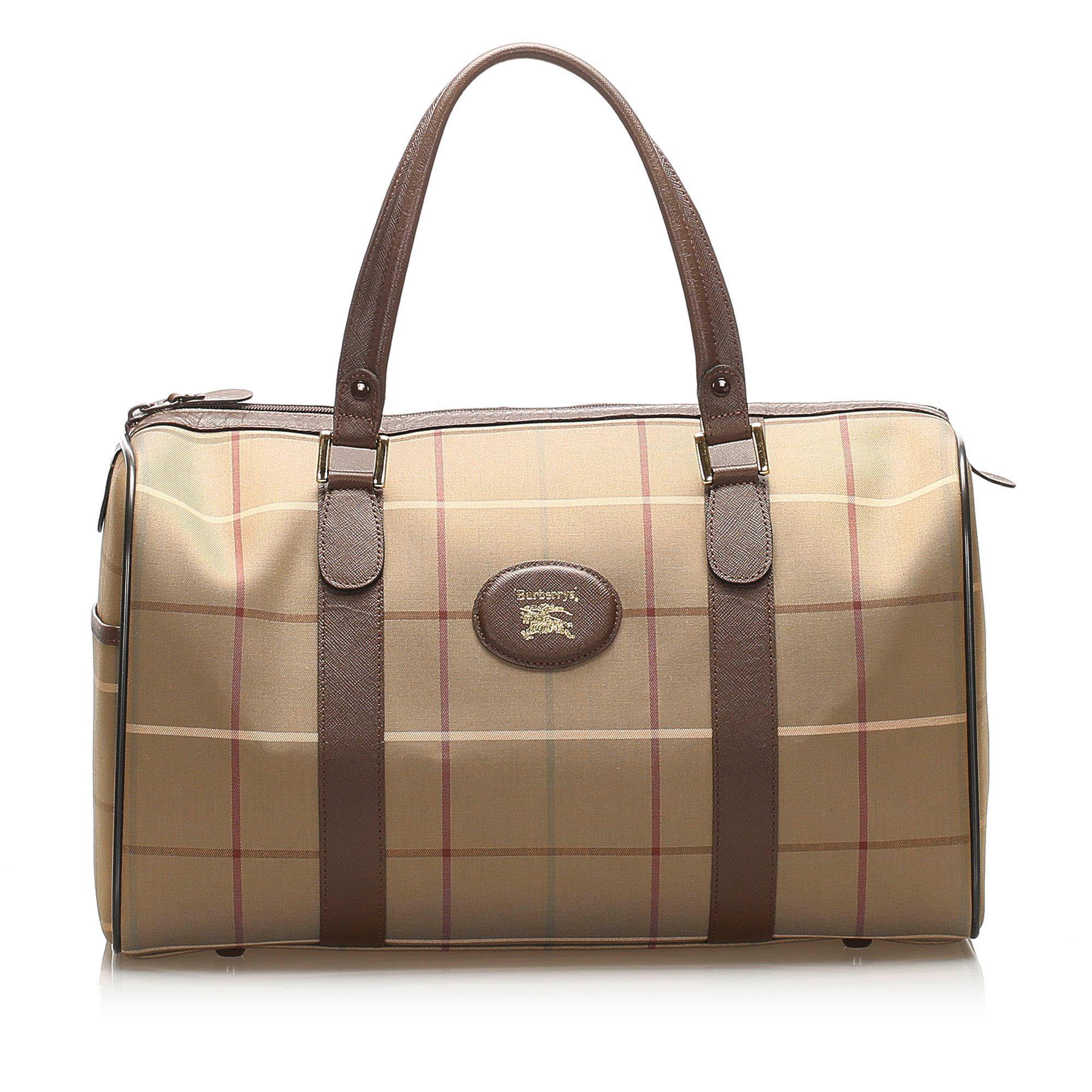 Burberry Plaid Canvas Boston Bag (SHG-14387)