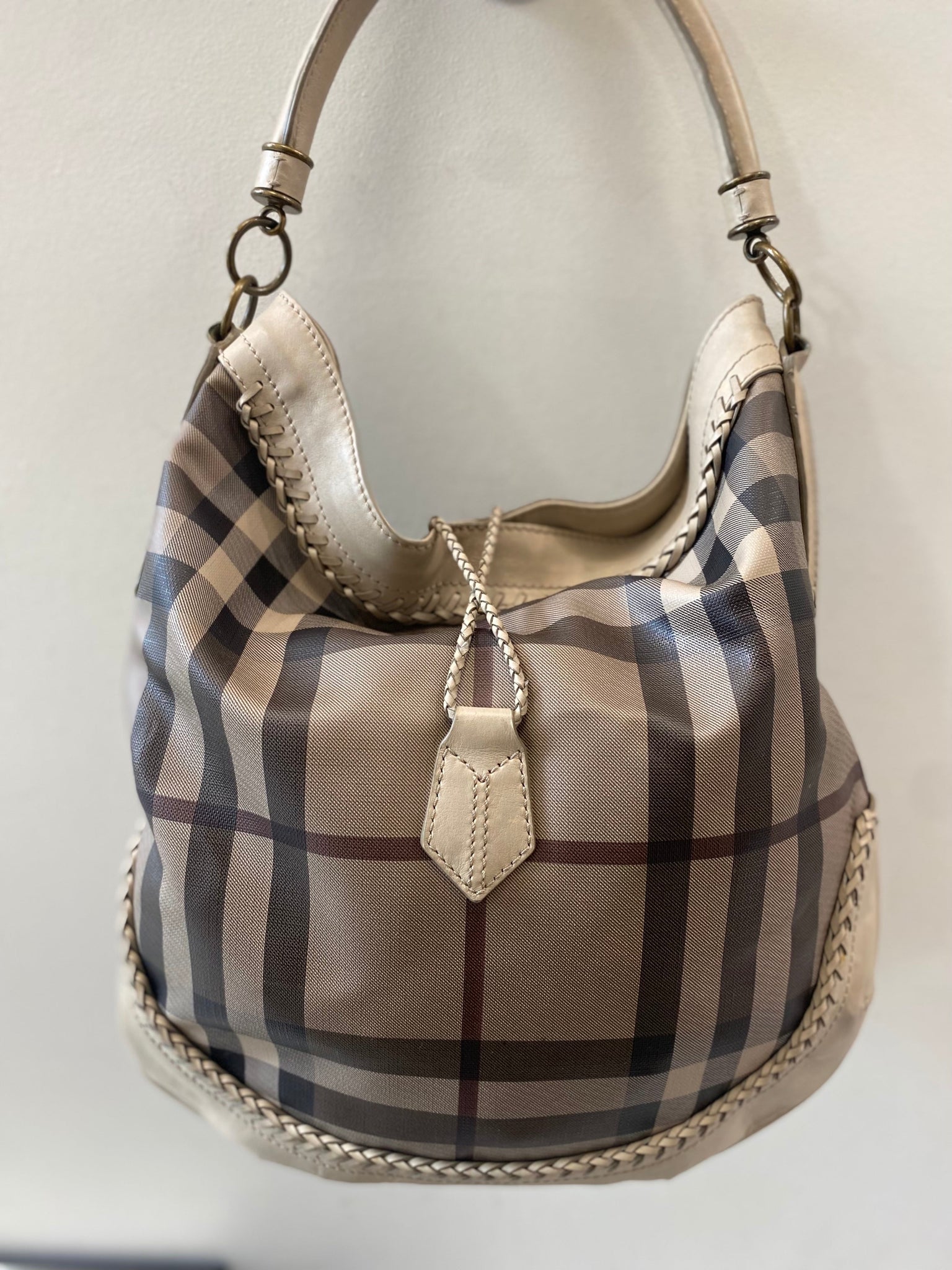 BURBERRY SMOKED CHECK PARADE HOBO BAG