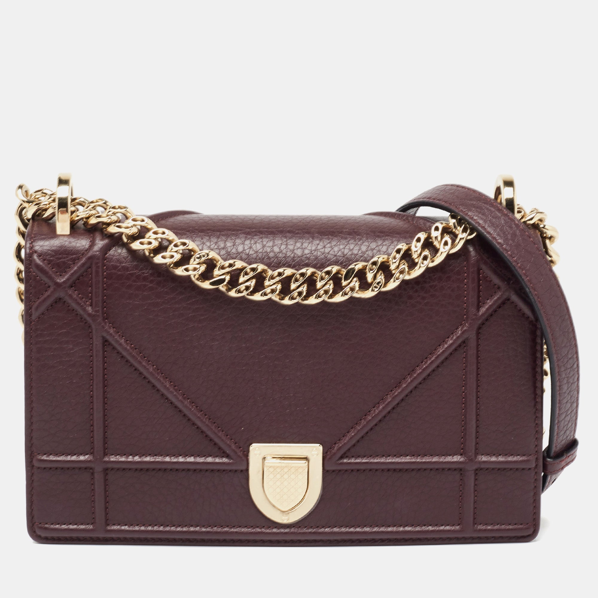 Discover the exquisite Dior Burgundy Leather Small Diorama Shoulder Bag, a perfect blend of elegance and practicality. Crafted from premium burgundy leather, this designer luxury handbag boasts a chic design that complements any outfit. Known for its superior quality and iconic reputation, Dior ensures lasting style and durability. If you are looking to buy luxury handbags online, our price comparison platform helps you find the best deals, making it easy to indulge in this stunning bag. Trust our expertise to guide you in your search for designer pieces while enjoying the benefits of competitive pricing and reliable information.