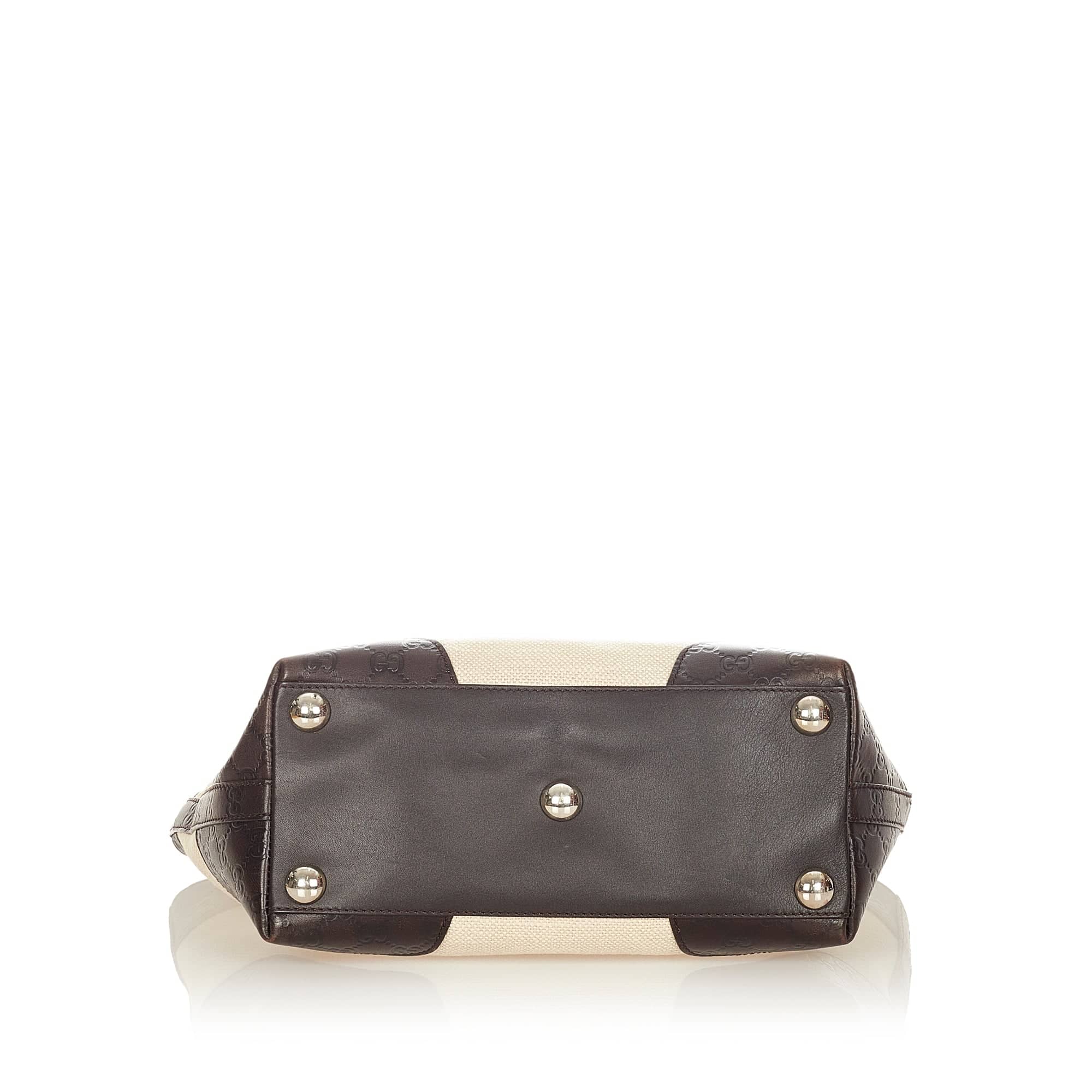 This Gucci Tote BAG was made of light brown canvas and has brown leather caps, which shows Gucci's Guccissima pattern in the form of a embossing. The image of silver details and flat, leather shoulder straps is completed. You can get access to the interior of the Bag. Here has the Bag Via a zipper compartment and plug -in compartments on the opposite side. the Bag is preferably led to the shoulder.