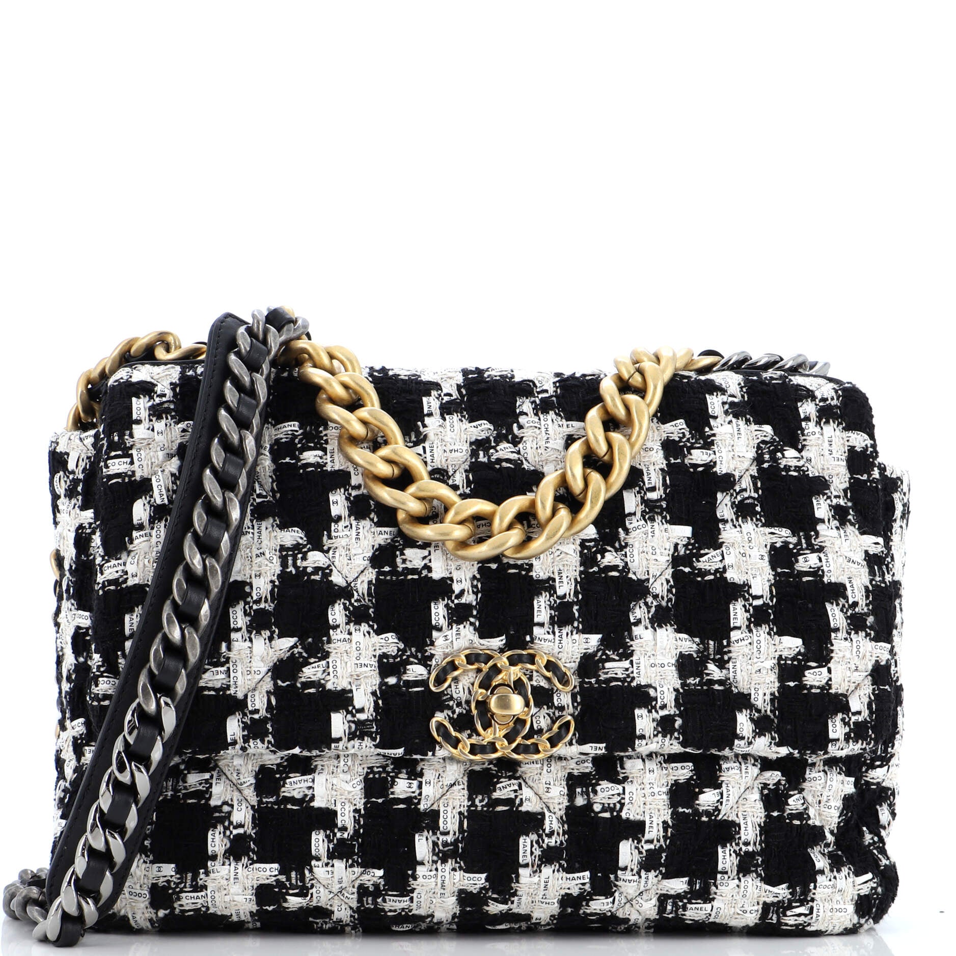 CHANEL 19 Flap Bag Quilted Houndstooth Tweed and Ribbon Medium