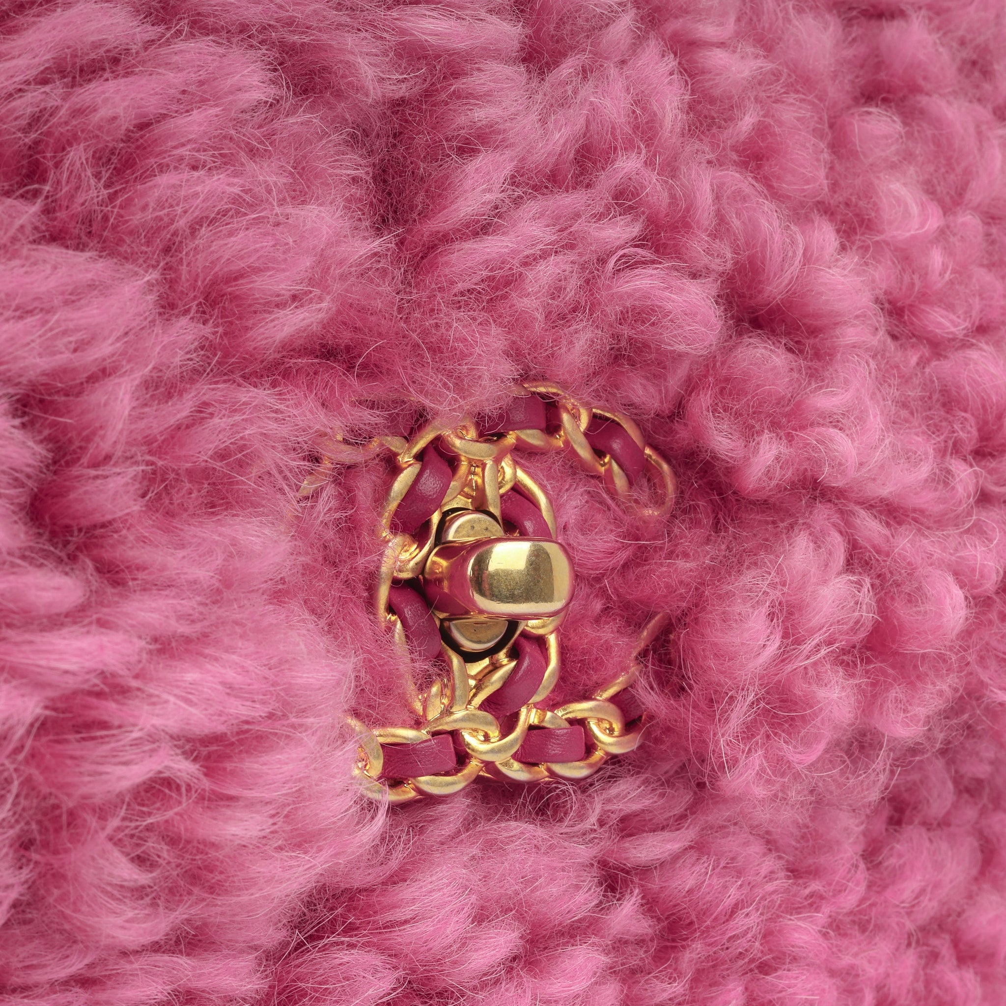 Introducing the Chanel 19 Shearling Bag in vibrant hot pink. Crafted with luxurious shearling, this bag offers both style and comfort. With its spacious interior and adjustable chain strap, it's perfect for any occasion. Adorned with the iconic Chanel 19 lock closure and CC logo, it's a statement piece for any outfit. Elevate your look with the timeless elegance of Chanel.