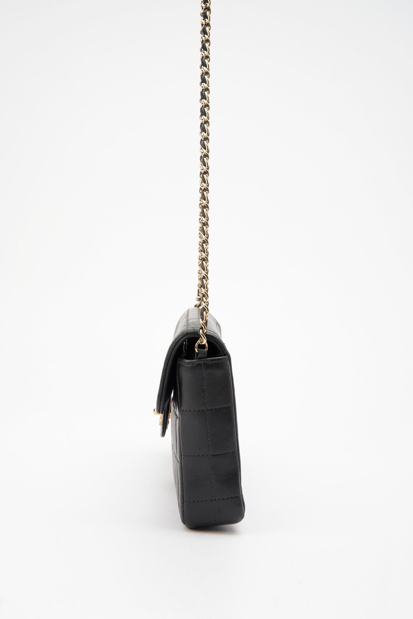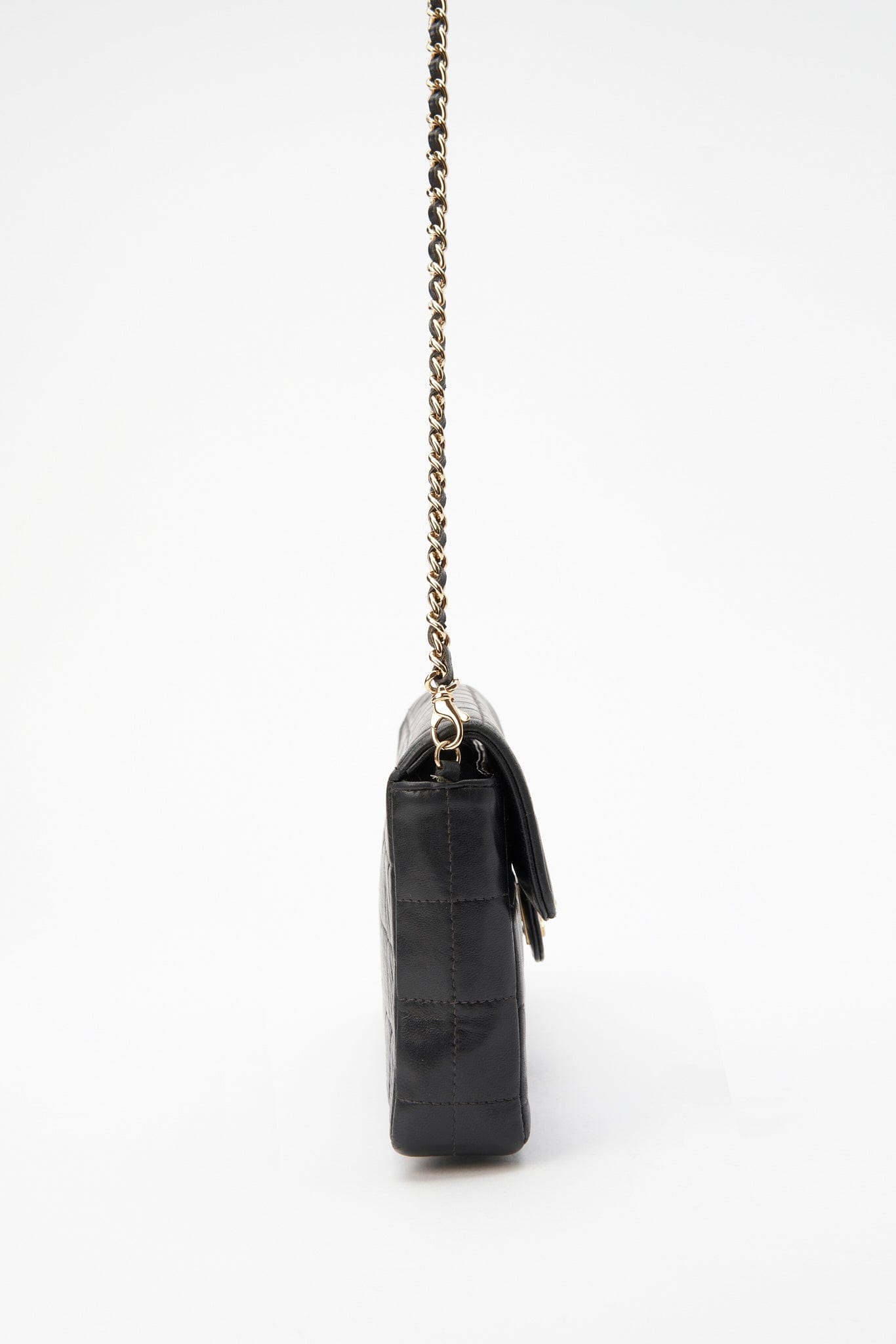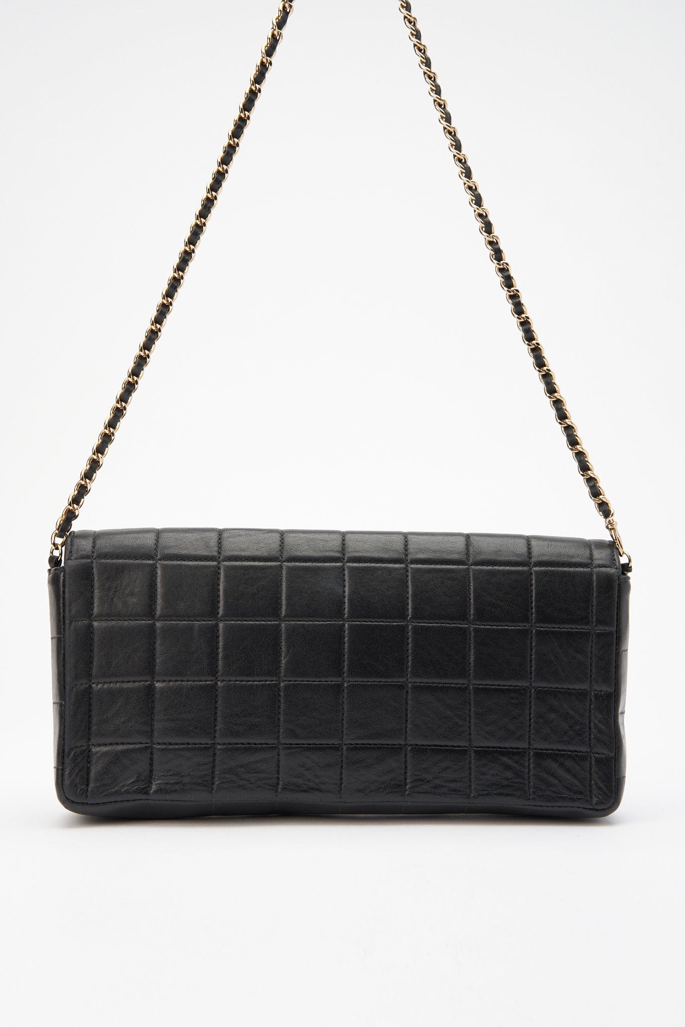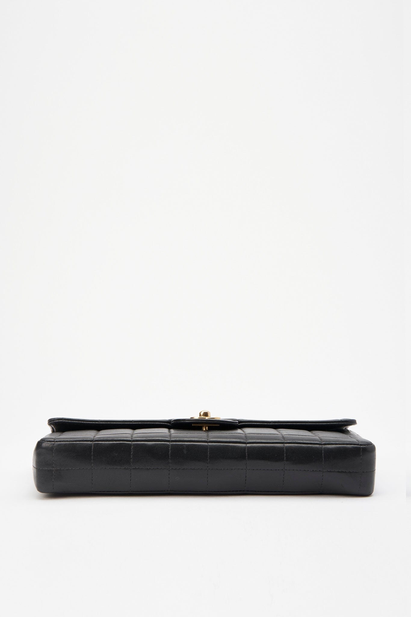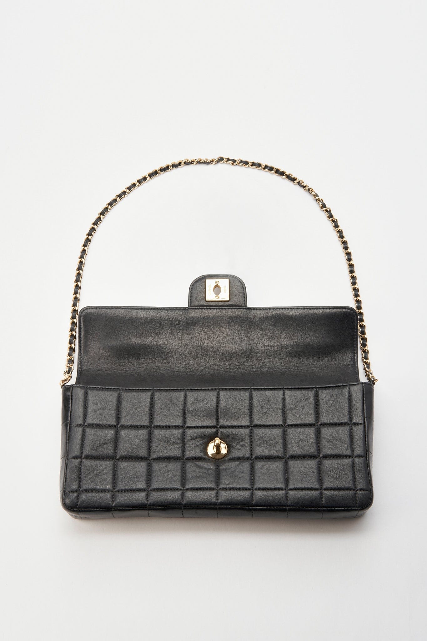 A super cool Chanel Chocolate Bar single flap shoulder bag, crafted from black leather and features the sought after 24k gold plated hardware.