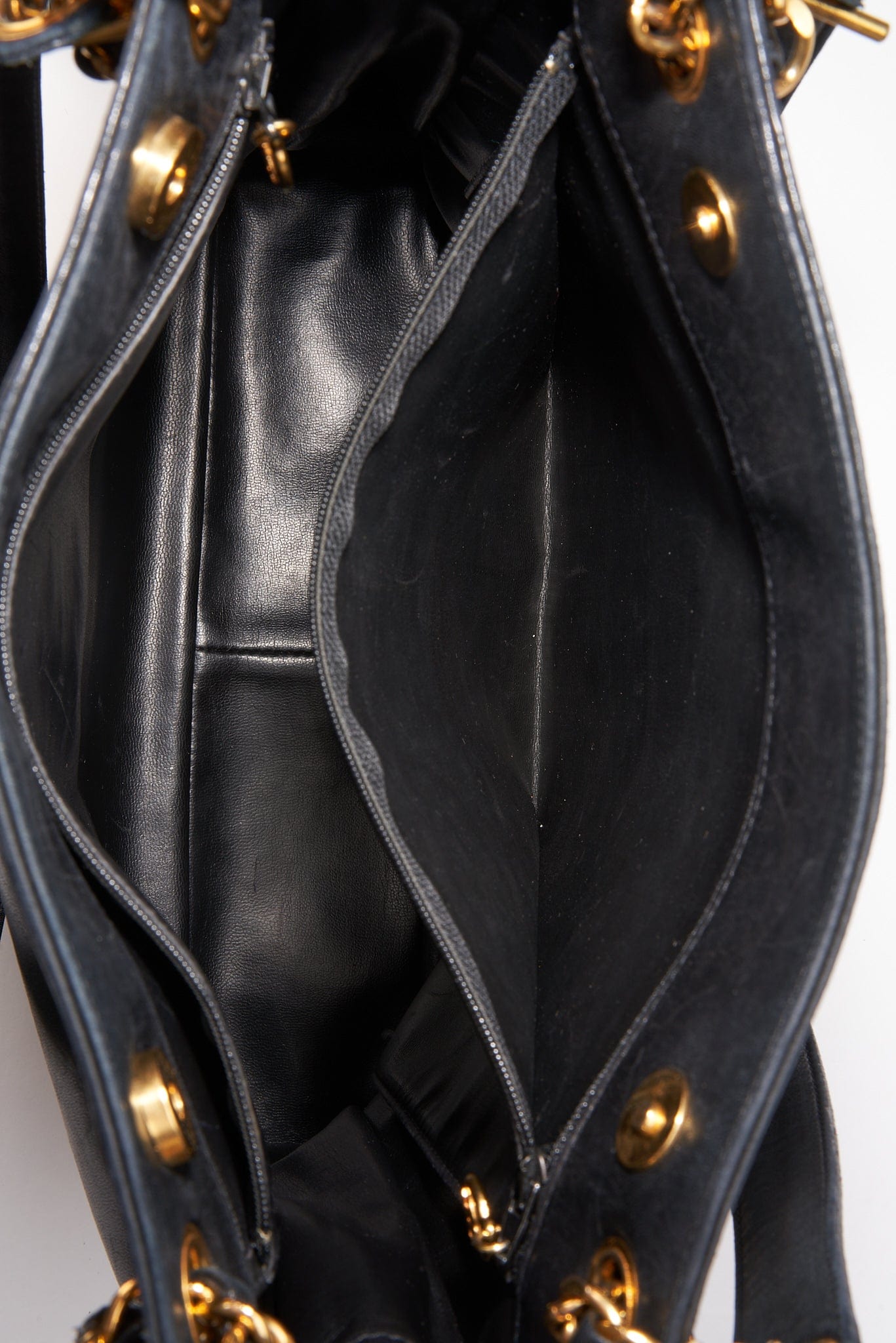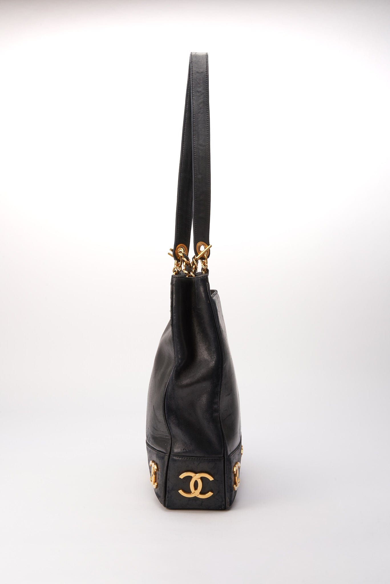 A rare and unique vintage Chanel tote bag. This stunning bag features double shoulder straps with chain detail and the iconic CC hardware along the bottom of front, back and sides.