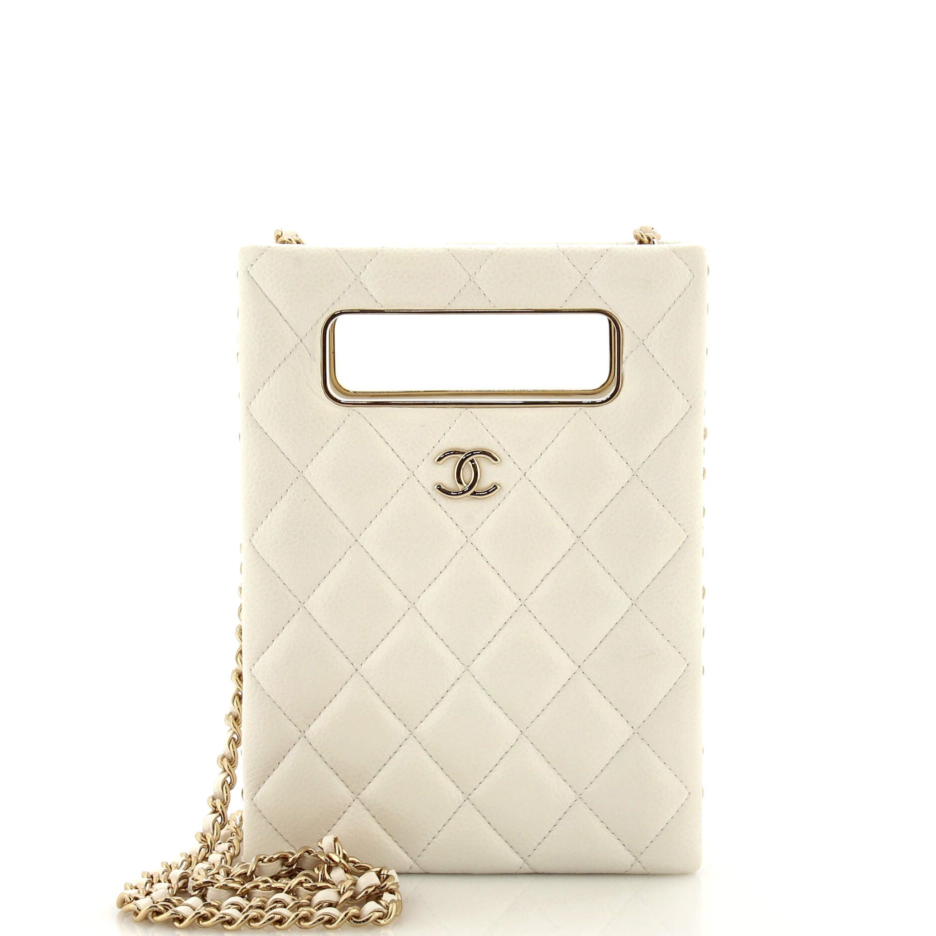 CHANEL Chain Around Cut Out Handle Evening Tote Quilted Caviar Mini
