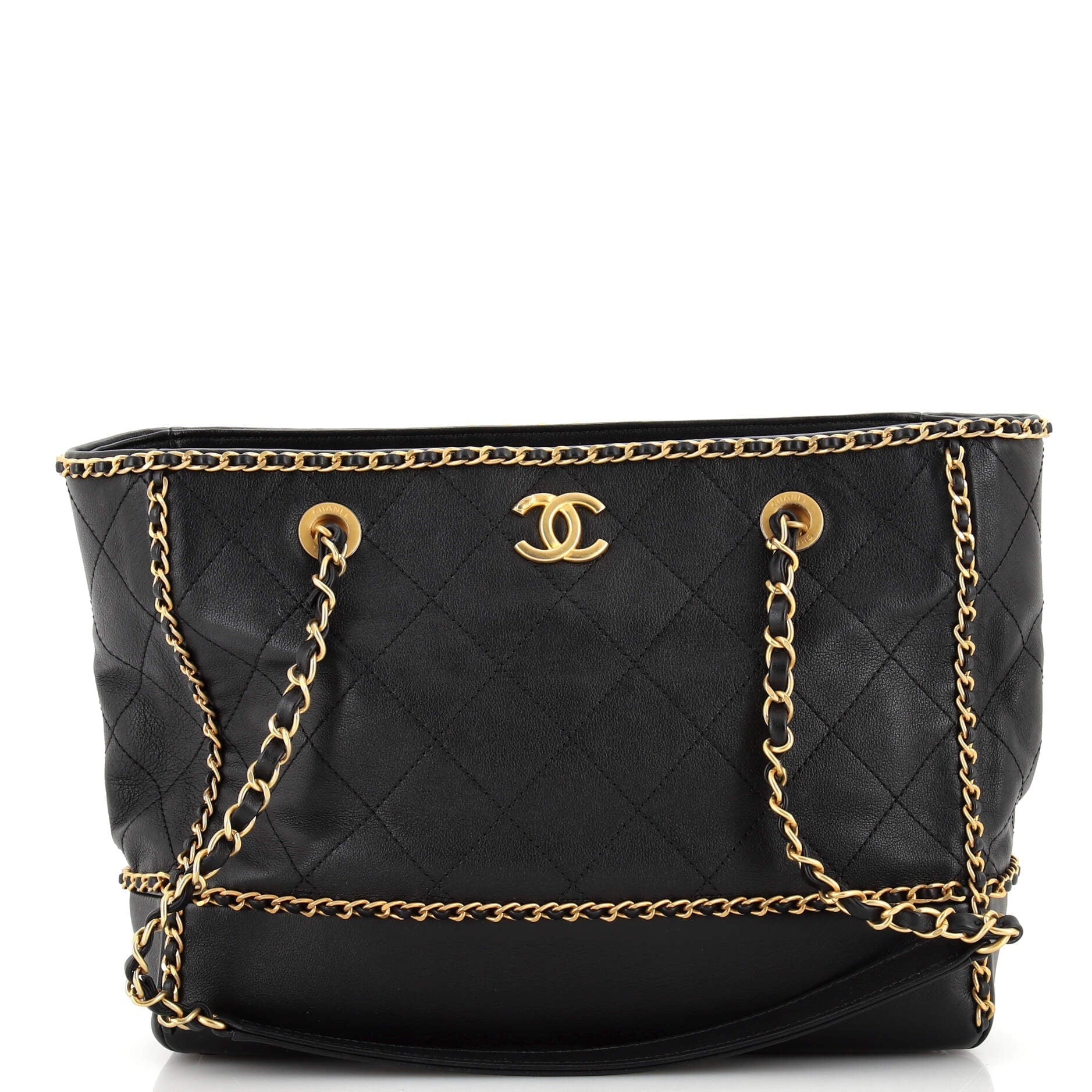 CHANEL Chain Around Lines Shopping Tote Quilted Calfskin Small