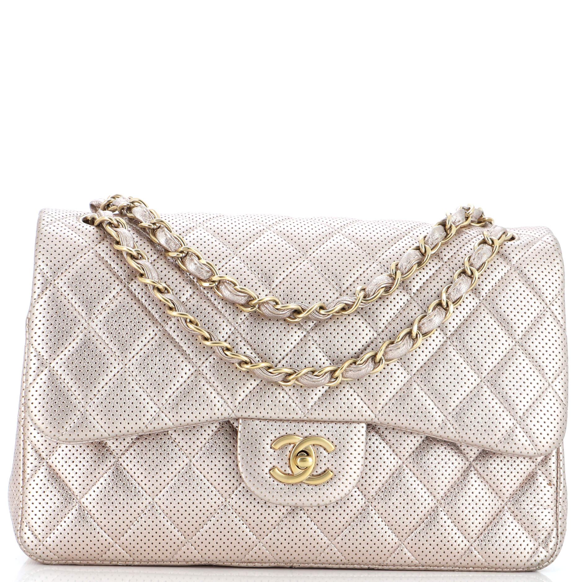 Discover the elegance of the CHANEL Classic Double Flap Bag Quilted Perforated Lambskin Jumbo, a quintessential piece in designer luxury handbags. Crafted from premium lambskin, this bag boasts a timeless quilted design and exceptional quality, ensuring lasting appeal. Ideal for any occasion, its practicality combines style and functionality. When considering a purchase, use our price comparison tool to find the best deals on luxury handbags. Trust our site for reliable information and expert insights, as we prioritize ity and brand reputation. Shop confidently and buy luxury handbags online, knowing you are investing in a piece of fashion history with CHANEL.