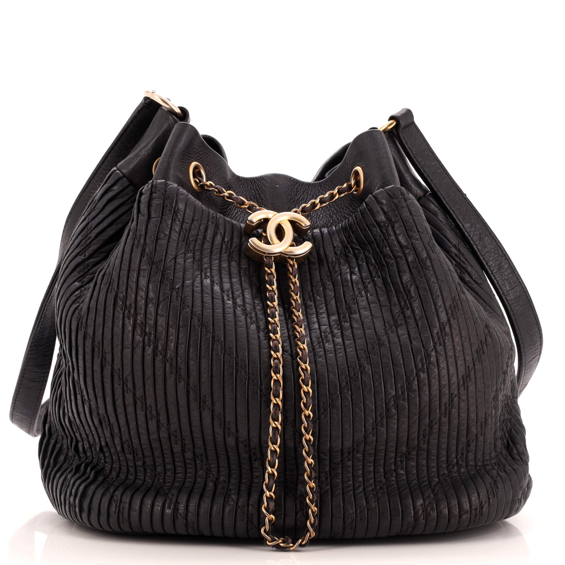 CHANEL Coco Pleats Drawstring Bag Pleated Crumpled Calfskin Medium