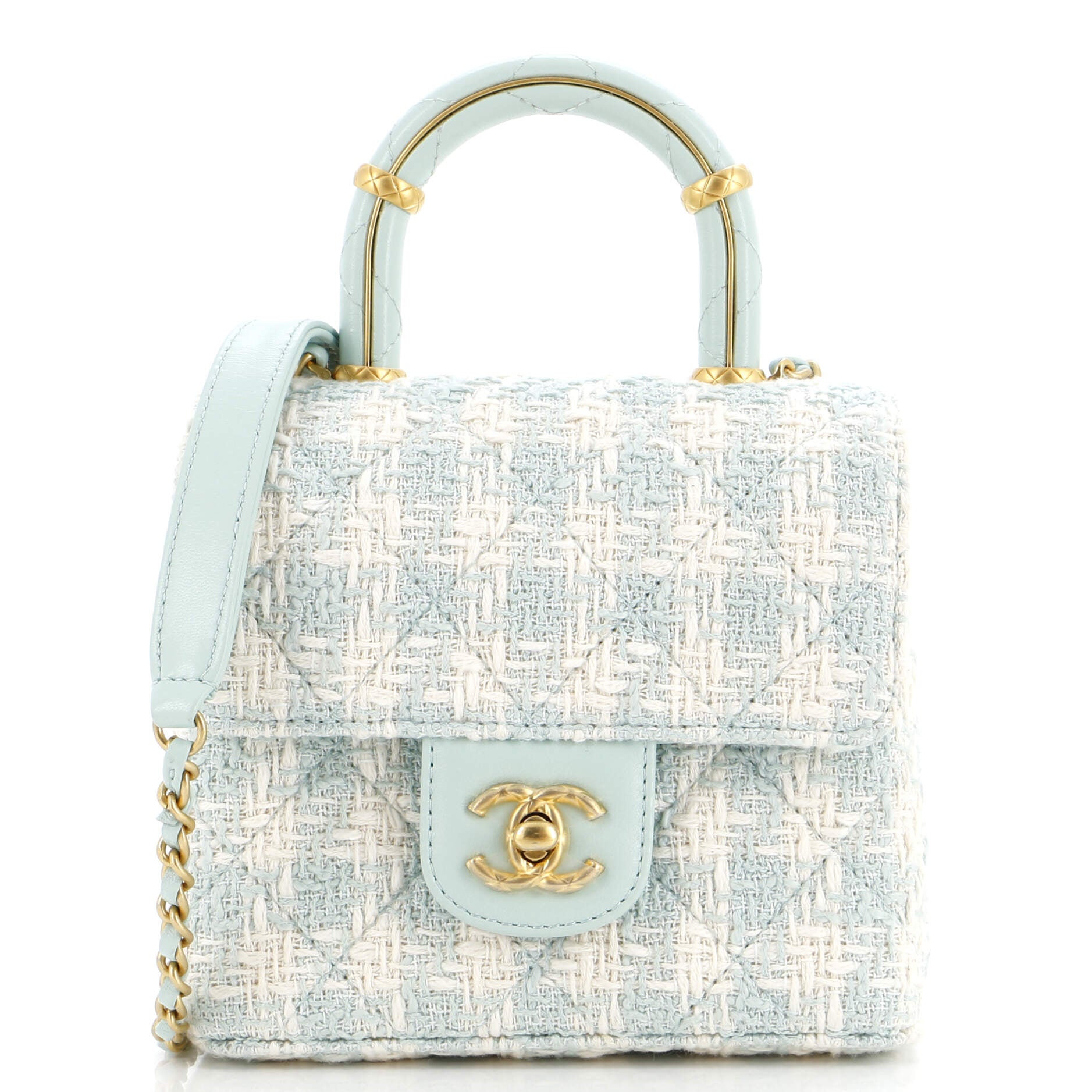 CHANEL Crush Top Handle Flap Bag Quilted Tweed Mini