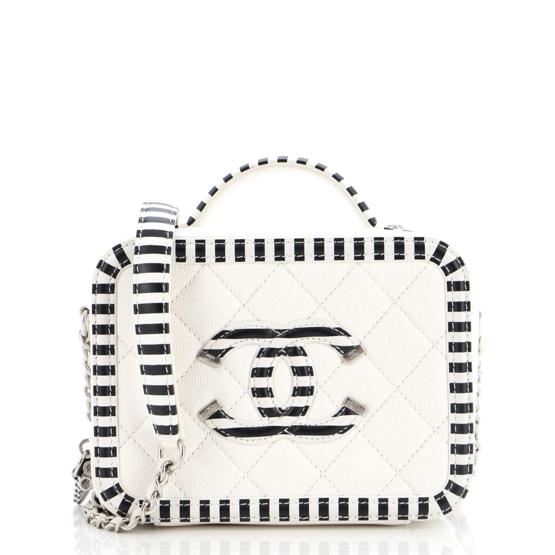 Discover the exquisite CHANEL Filigree Vanity Case Quilted Caviar with Striped Leather Small, a must-have for any designer luxury handbags collection. Crafted from premium caviar leather, this stylish bag combines elegance and practicality, making it perfect for everyday use or special occasions. for its superior quality and iconic design, Chanel offers unmatched brand reputation in luxury fashion. Utilize our price comparison platform to buy luxury handbags online, ensuring you find the best deals available. Trust our expertise to guide you in choosing the perfect luxury handbag while enjoying the benefits of informed shopping. Elevate your style with Chanel today.