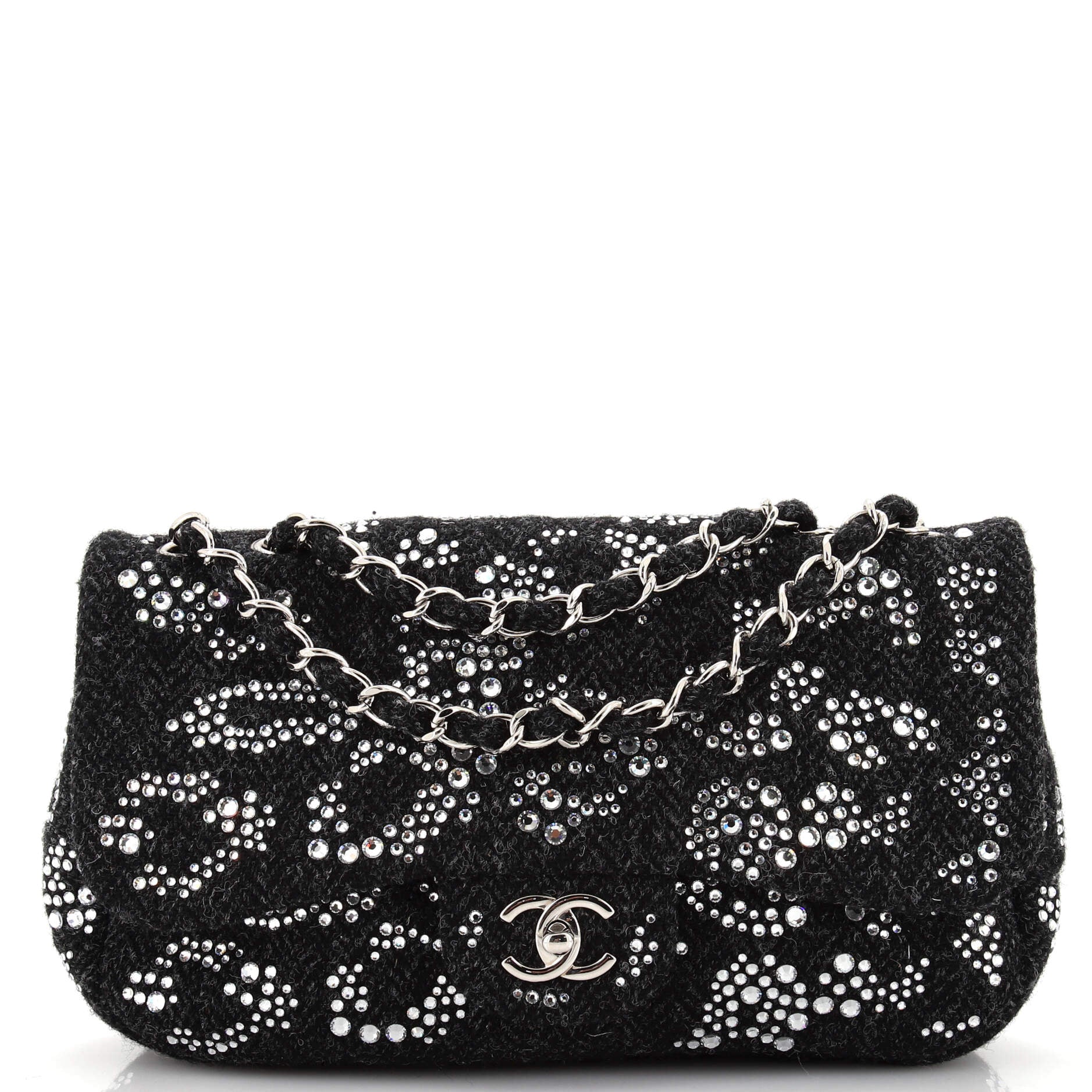 CHANEL Leopard CC Flap Bag Crystal Embellished Tweed Jumbo
