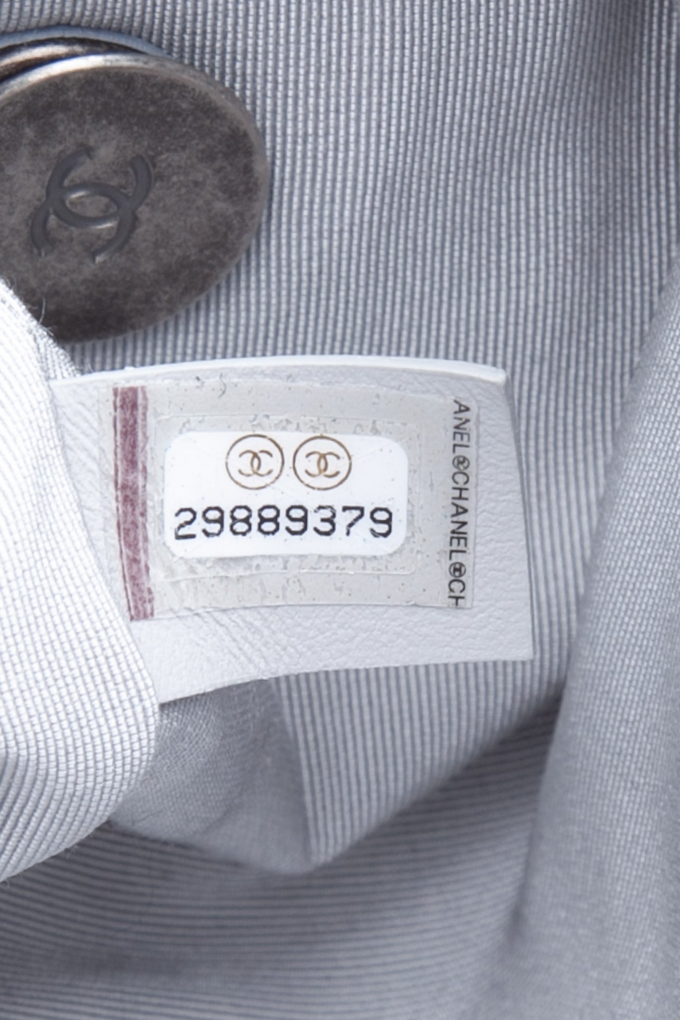 This is an authentic CHANEL Calfskin Chain 20s Signature Bowling Bag in Light Gray. This stylish chain wallet is crafted of textured diamond quilted calfskin leather in gray. The bag features two top zippers that open to a matching fabric interior with a zipper pocket.