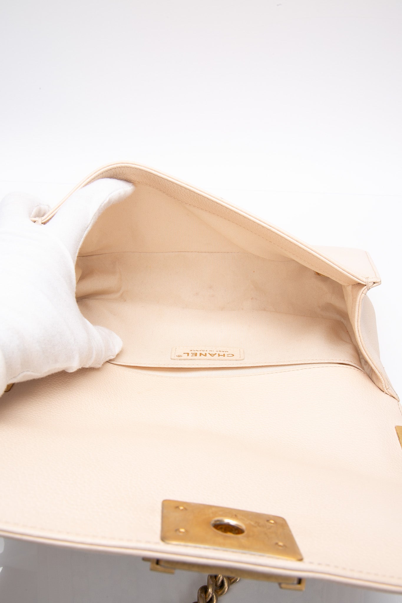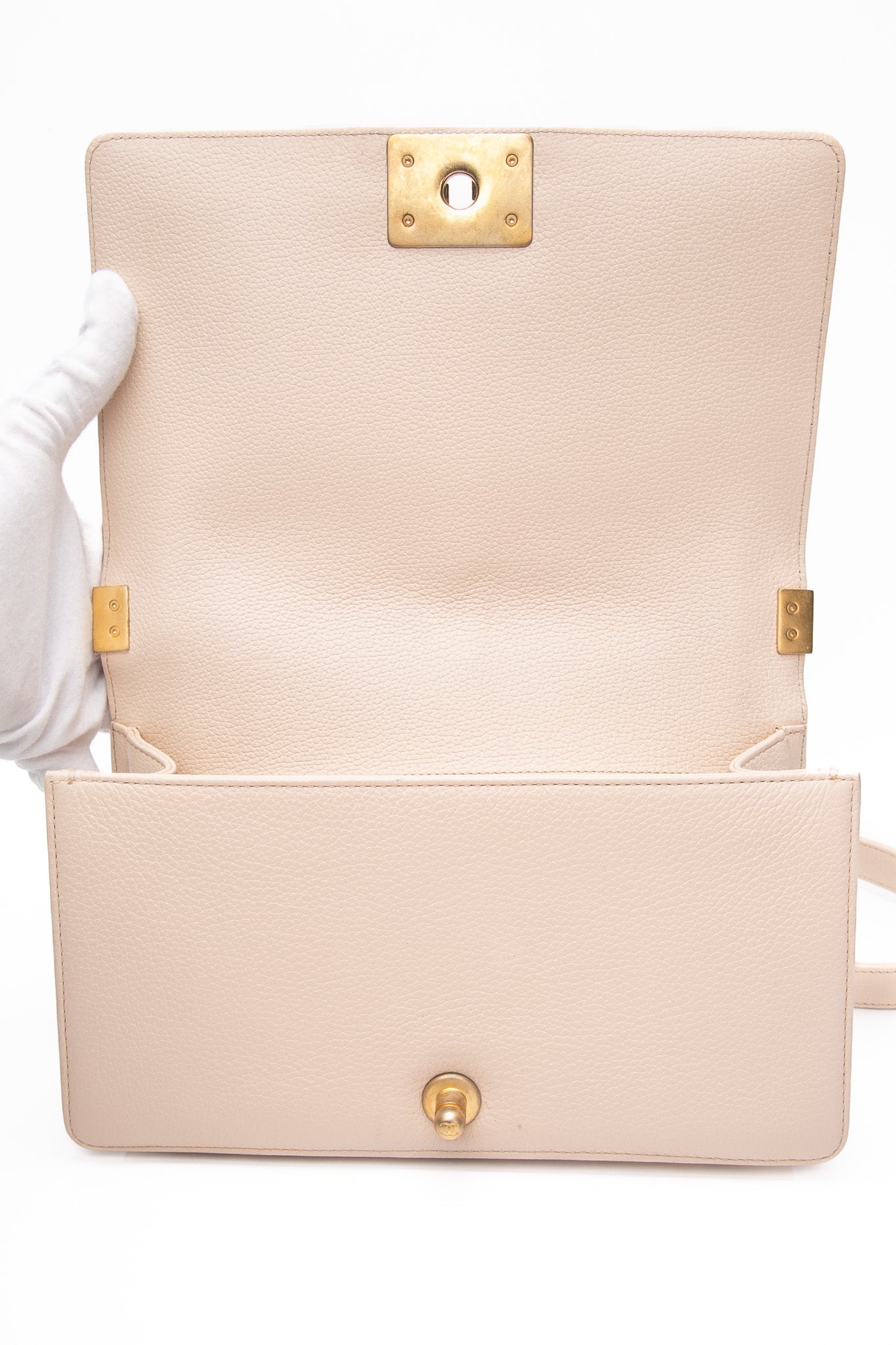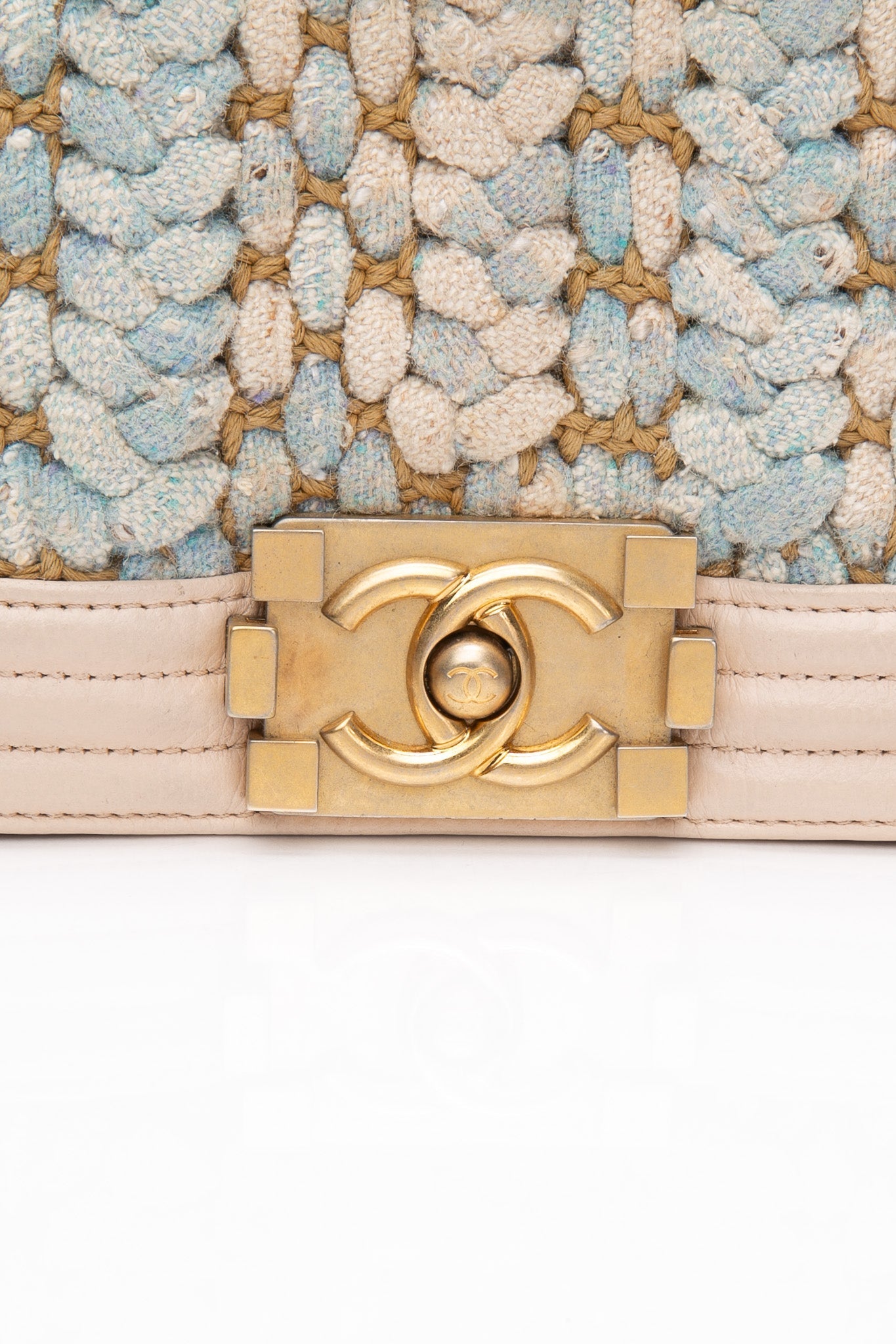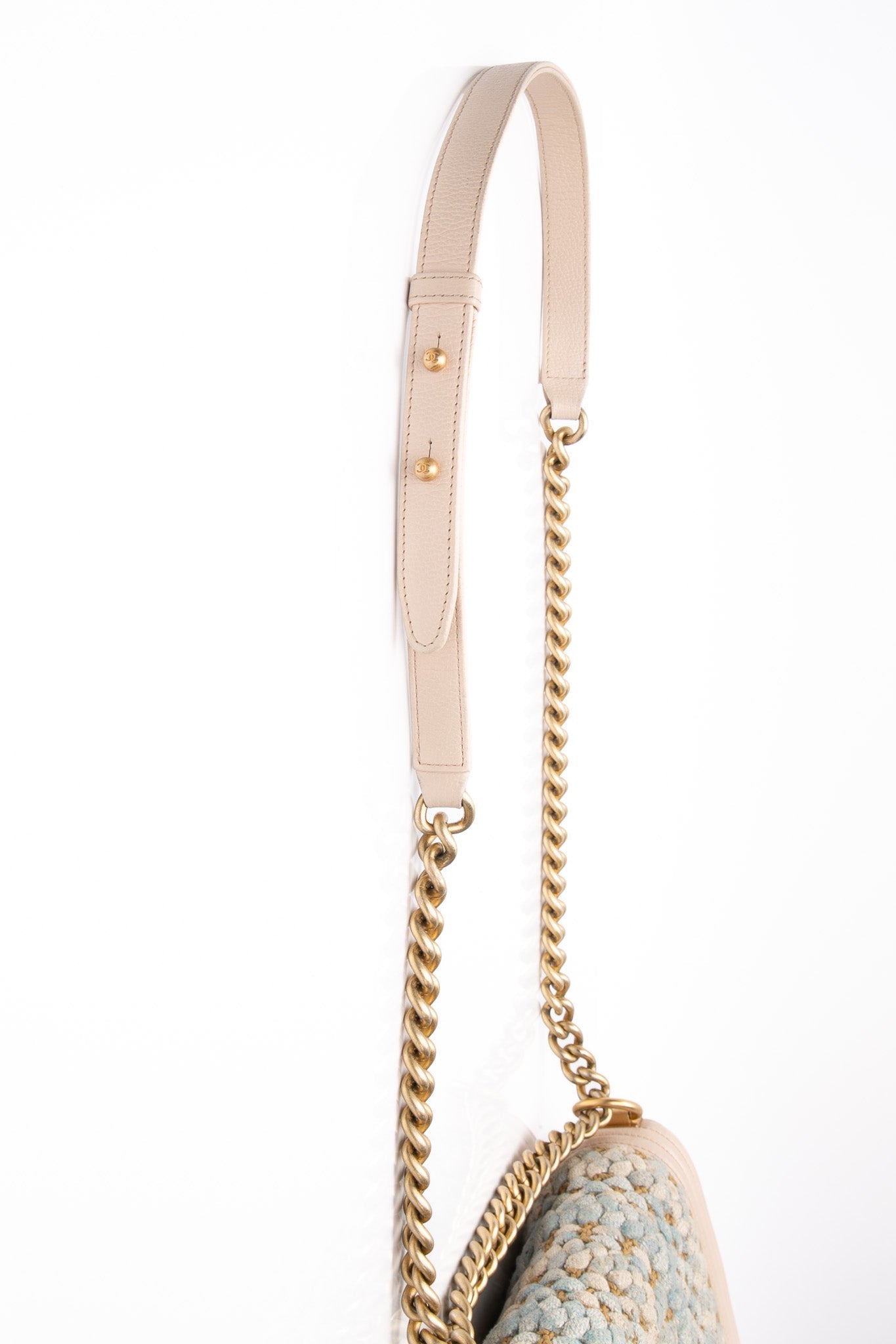 This chic shoulder bag is crafted of multi-colored tweed with a pink lambskin trim with prominent stitching that frames the flap edges. From Chanel’s Cuba-Inspired Cruise 2017 Collection, this bag features an aged gold chain shoulder strap with a leather shoulder pad, and a boy CC push lock. The flap opens to a fabric interior with a flat pocket.