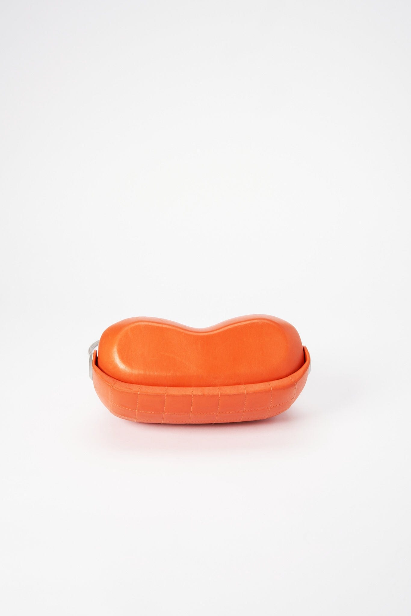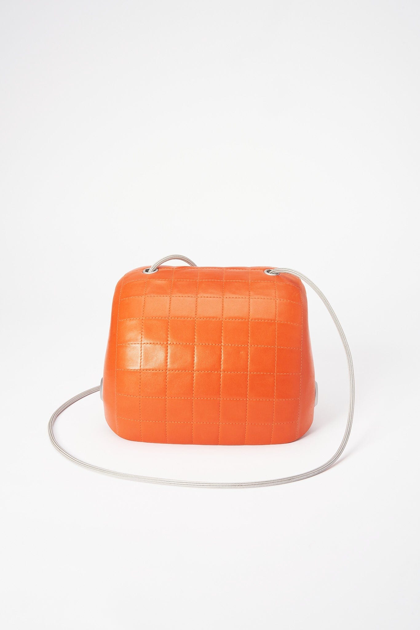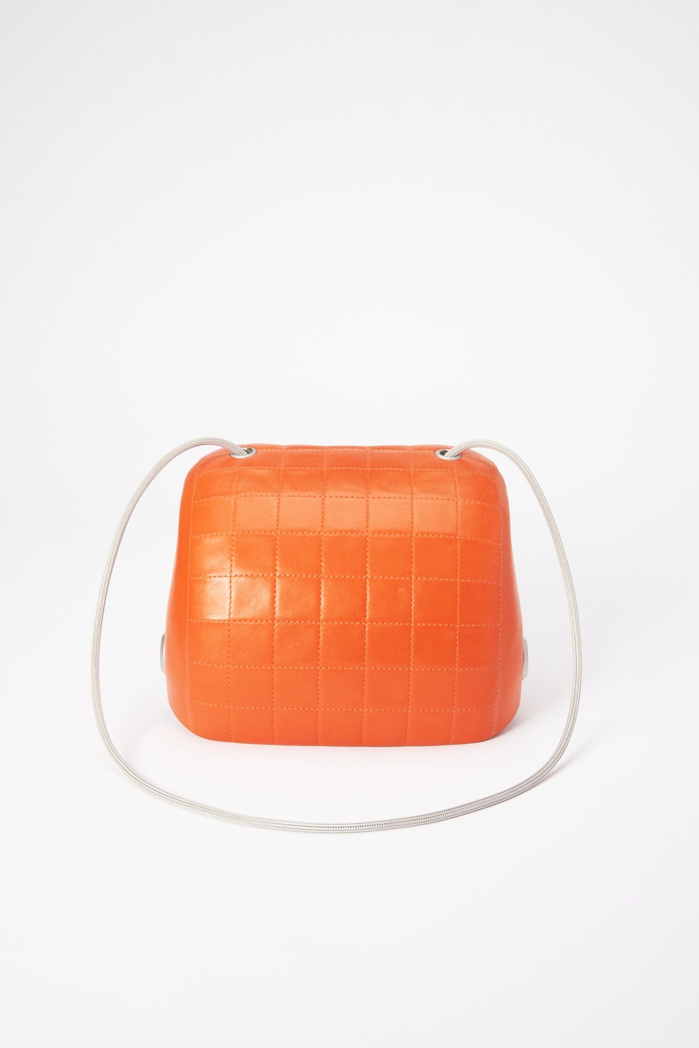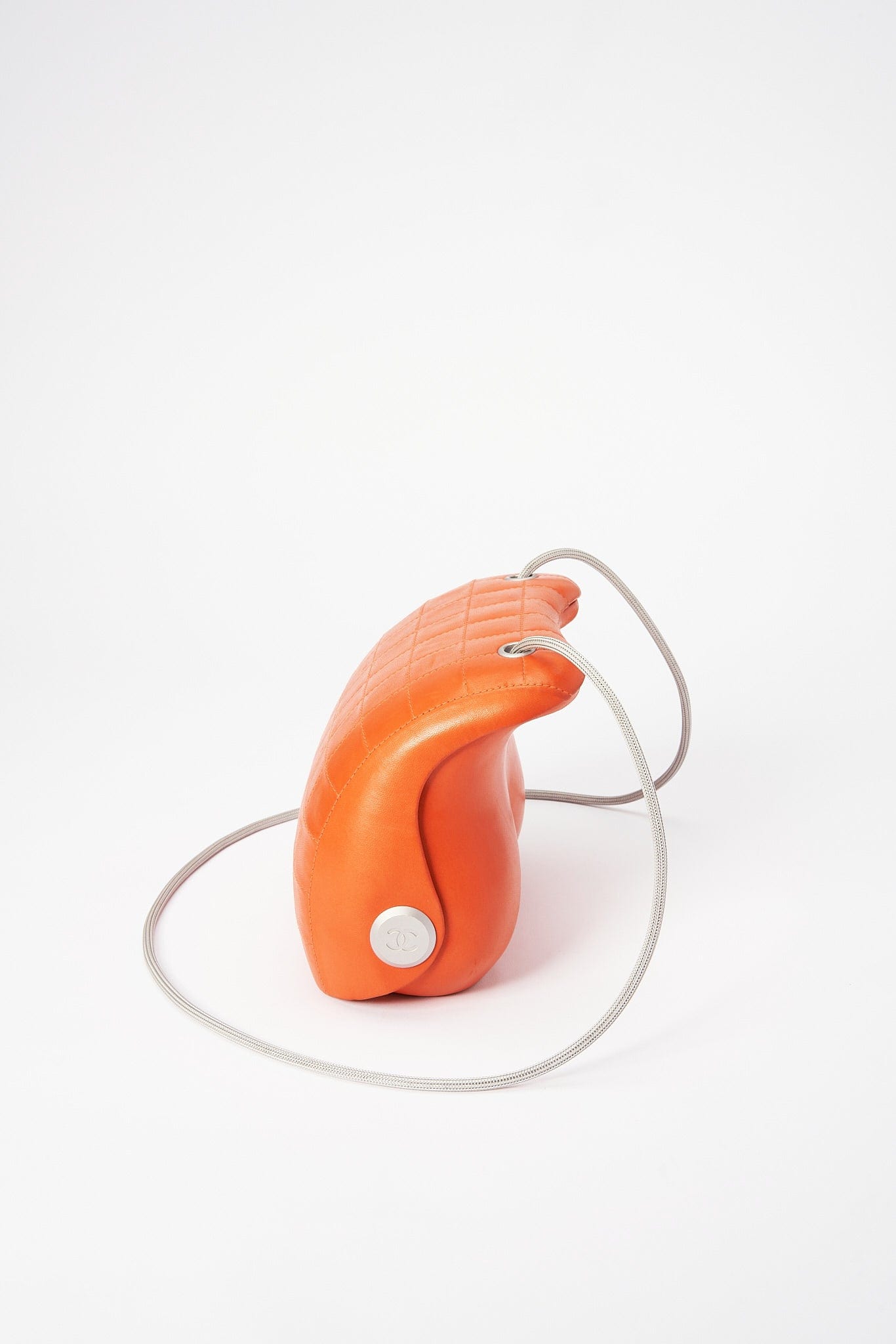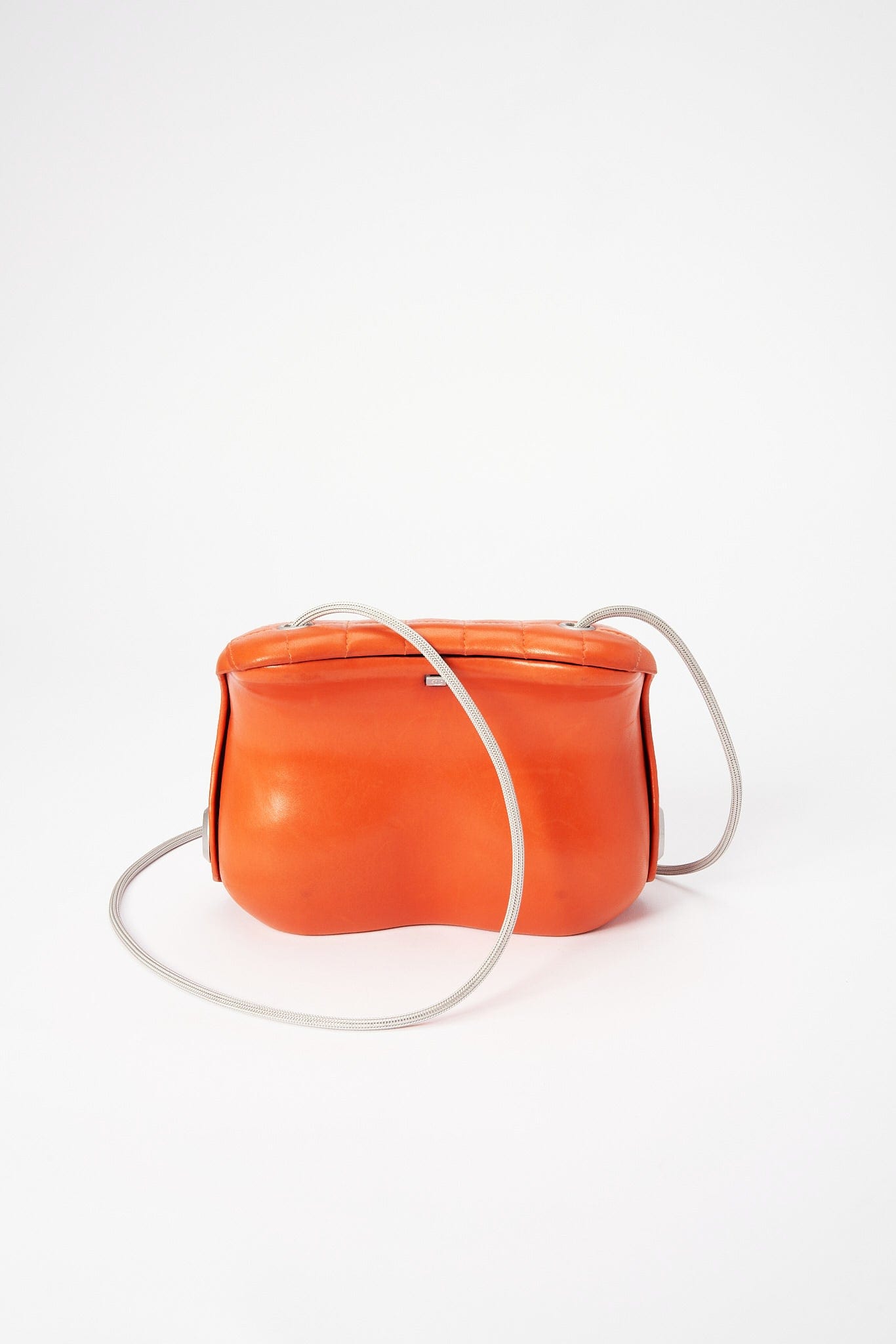 An incredibly rare Chanel Millenium hard case shoulder bag crafted from orange leather with silver hardware.