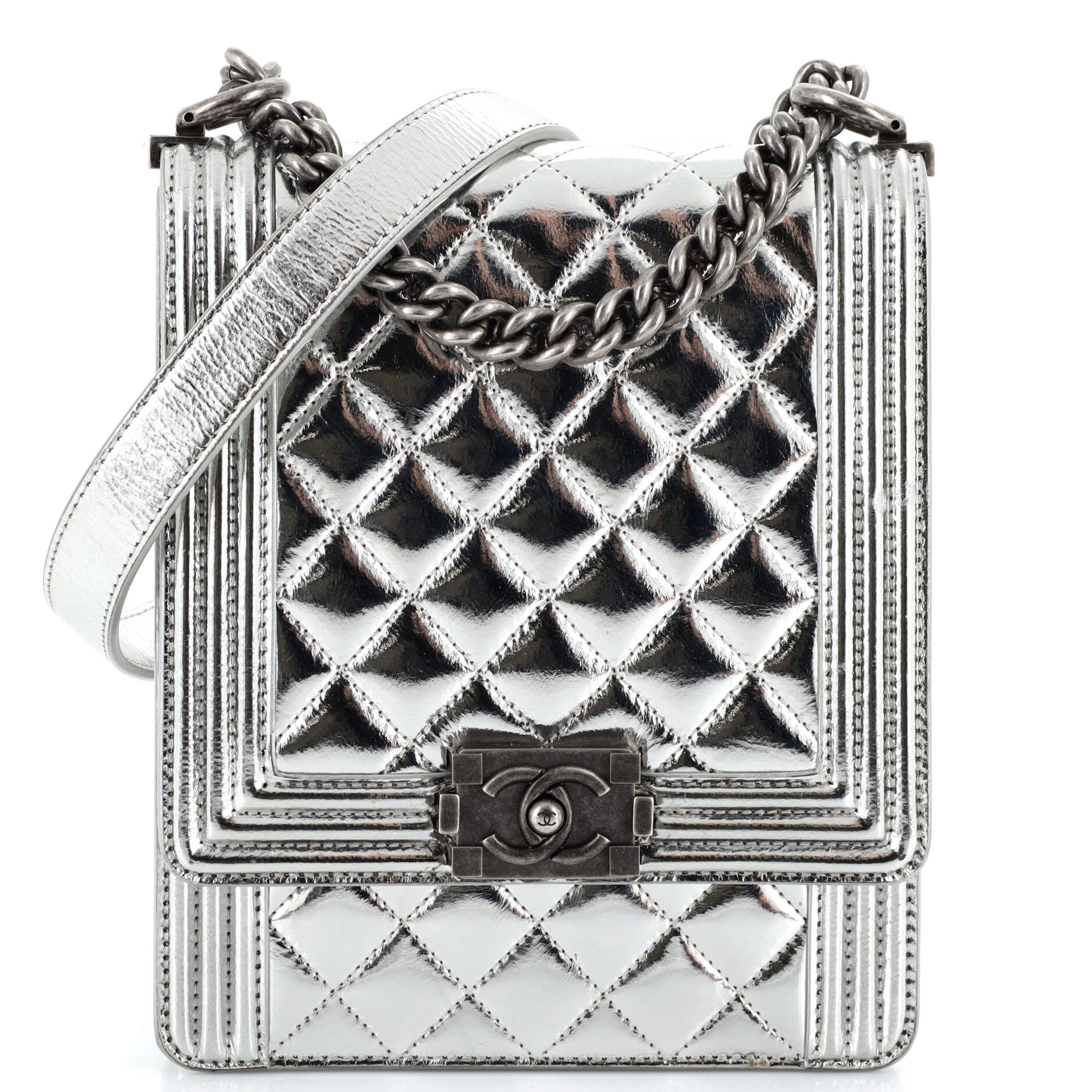 CHANEL North South Boy Flap Bag Quilted Metallic Calfskin Small