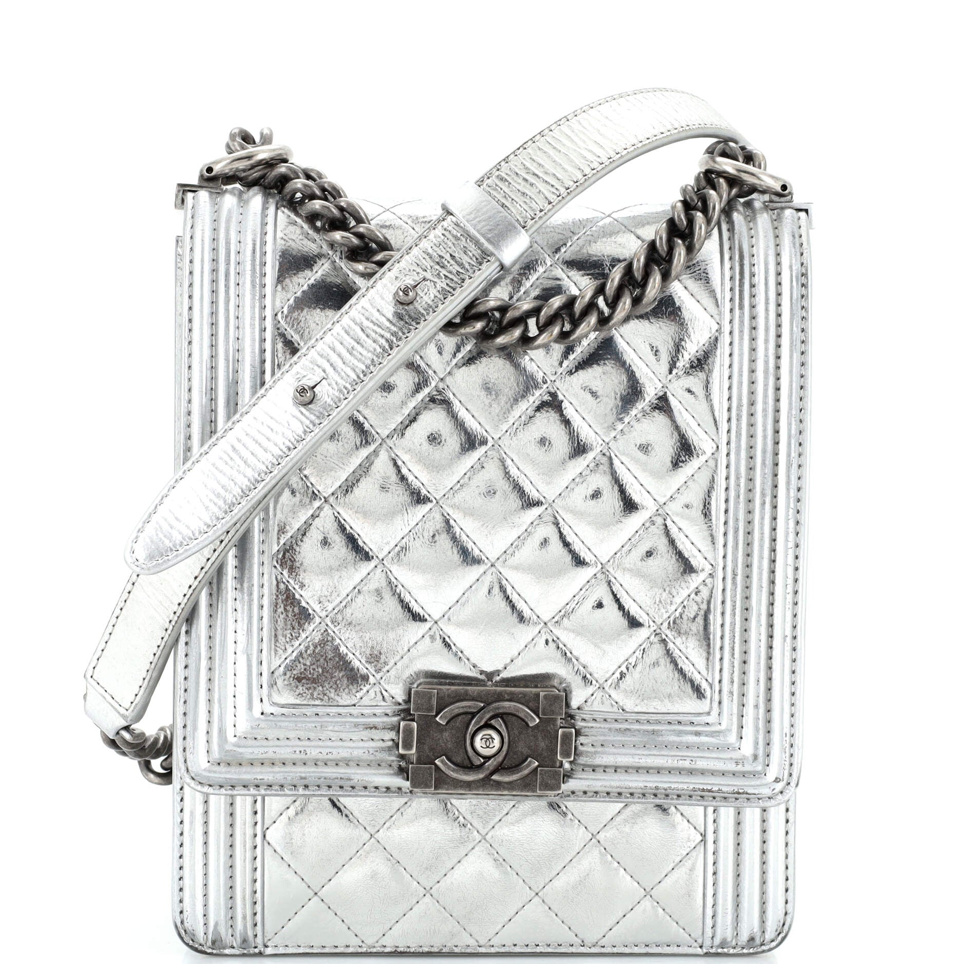 CHANEL North South Boy Flap Bag Quilted Metallic Calfskin Small