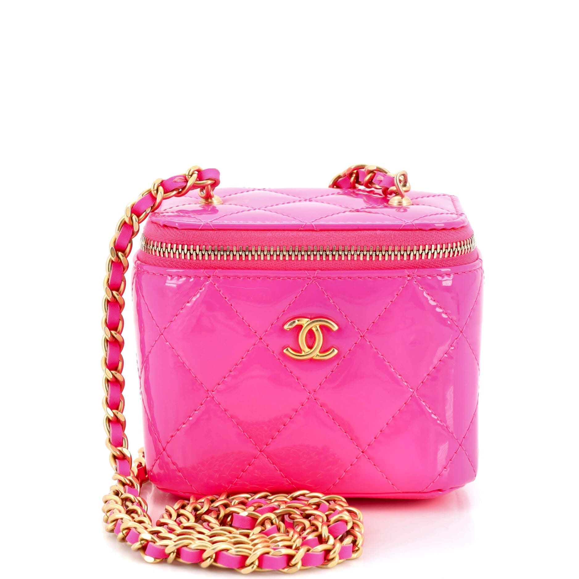 CHANEL Pearl Crush Vanity Case with Chain Quilted Patent Mini