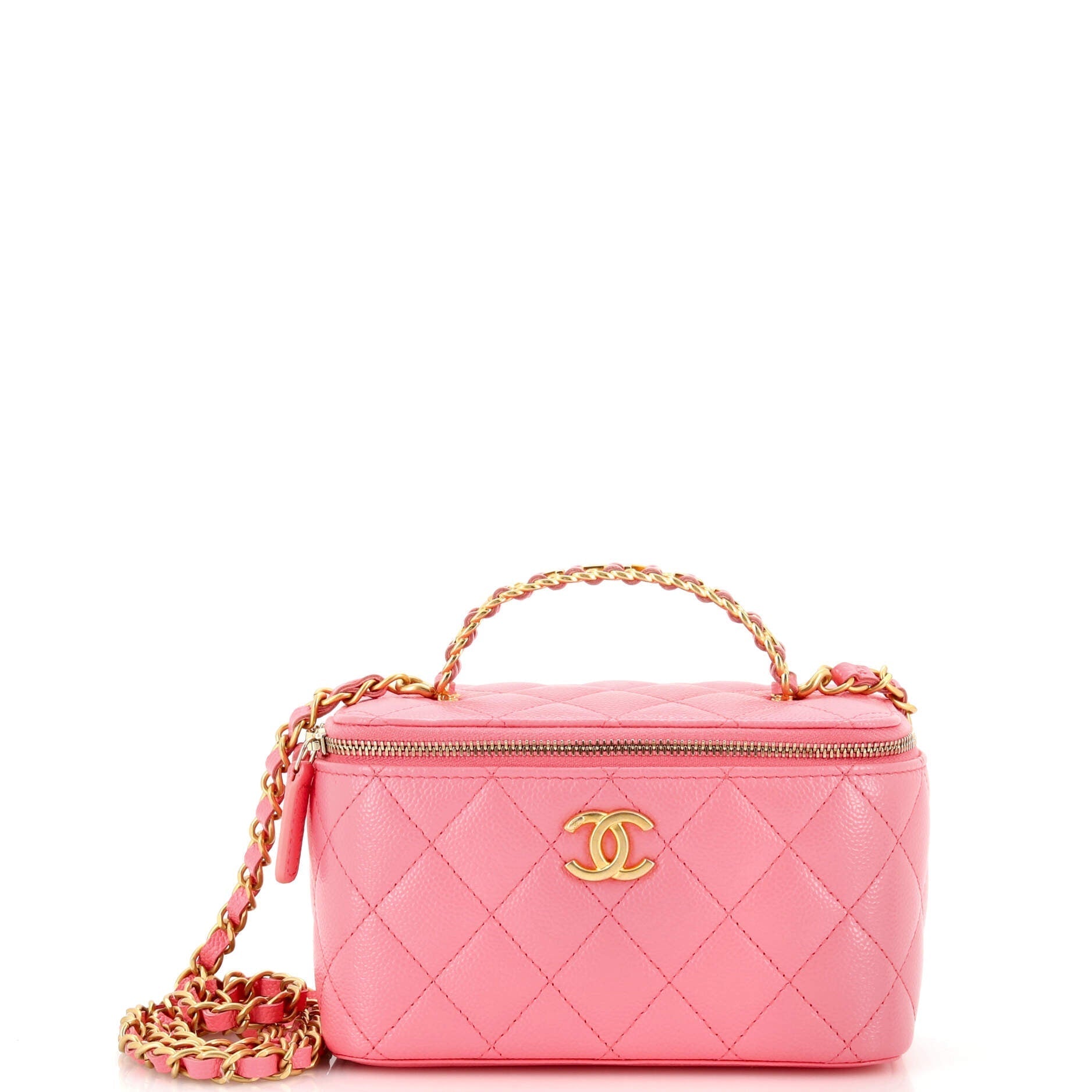 CHANEL Pick Me Up Logo Handle Vanity Case with Chain Quilted Caviar Small