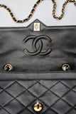 The serial number on the sticker tells us the bag was made between 1986 and 1988. This bag is in very good vintage condition with some minor signs of use. The hallmark on the CC turn lock confirms the gold hardware is plated in 24K gold, a real collectors item. Before 2008, Chanel Classic Flaps with gold coloured hardware (chains, clasps, grommets, and CC turn locks) were all plated in real 24K gold.