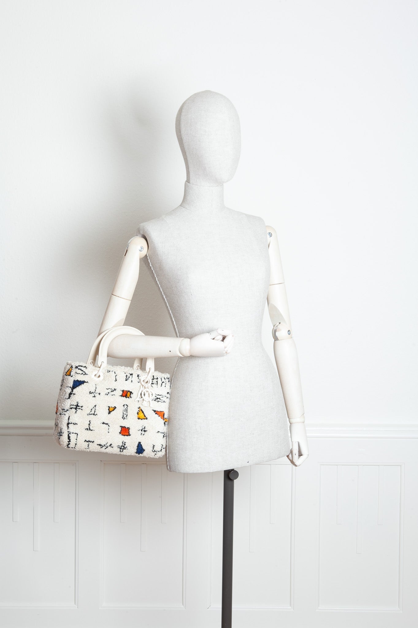 We Love: Für die fünfte Dior Lady Art Kollektion wurde die Klassikerin mit ägyptischen Hieroglyphen versehen. Aus weichem Glattleder gefertigt und mit Stoff Elementen versehen.