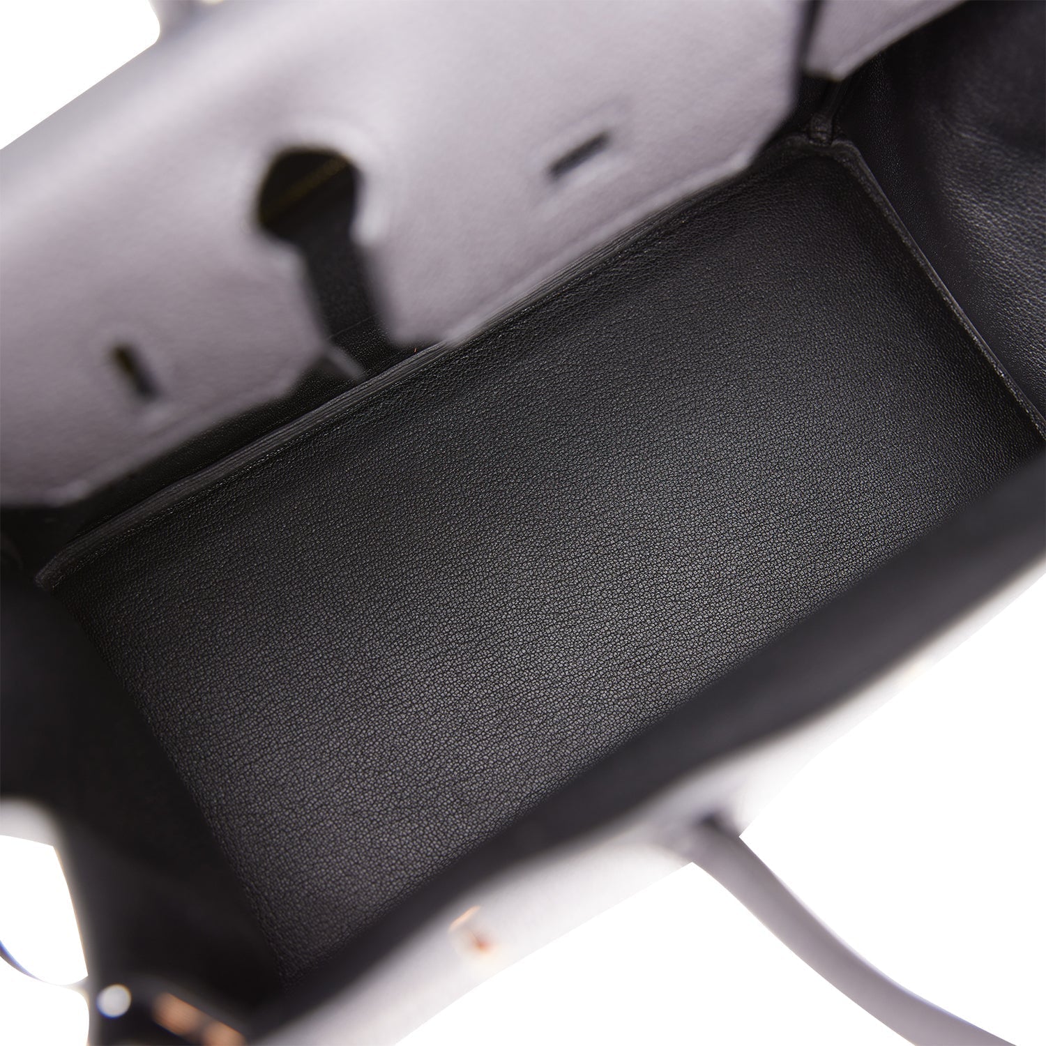 The interior is lined with black chevre and has one zip pocket with an Hermes engraved zipper pull and an open pocket on the opposite side.