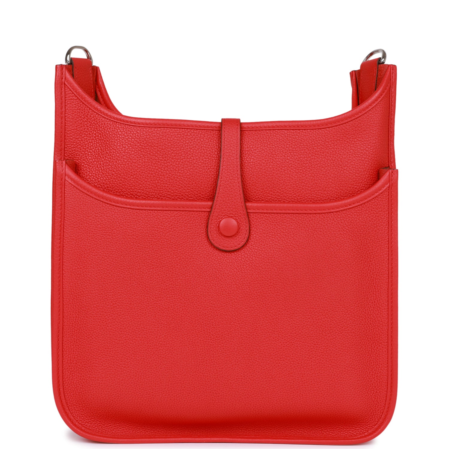 This Evelyne PM is in Rouge de Coeur clemence leather with palladium hardware and features tonal stitching stitching, pull tab top closure and a rouge de coeur removable canvas and leather shoulder/crossbody strap.