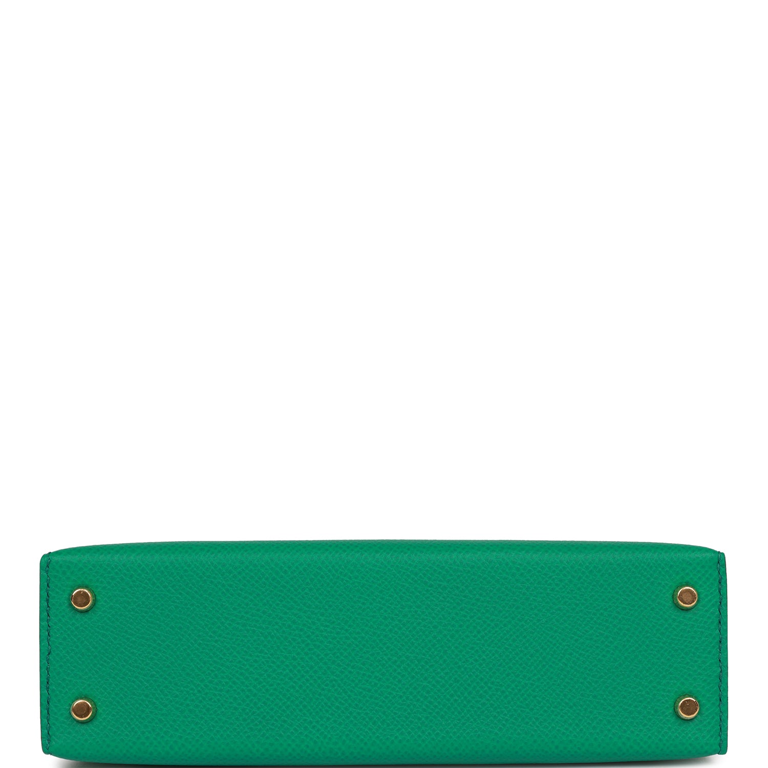 This Kelly, in the Sellier style, is in Vert Jade epsom leather with gold hardware and has tonal stitching, two straps with front toggle closure, single rolled handle and removable shoulder strap.