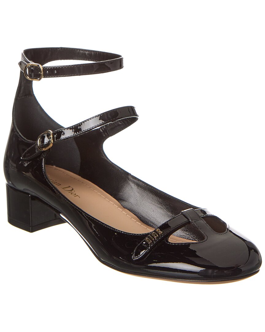 Elevate your look with the Dior Aime Dior Patent Pump. This stunning pump is crafted in Italy from black patent leather and features gold-tone hardware with a metal lettering logo for a touch of luxury. The adjustable ankle strap with buckle closure ensures a secure fit, while the lightly padded leather insole provides all-day comfort. The smooth leather sole and 1.5-inch heel add a touch of sophistication to any outfit. Please note that size selections are European, so be sure to reference the size chart for US conversions. With its elegant and timeless French luxury, this Dior pump is a must-have addition to your shoe collection.