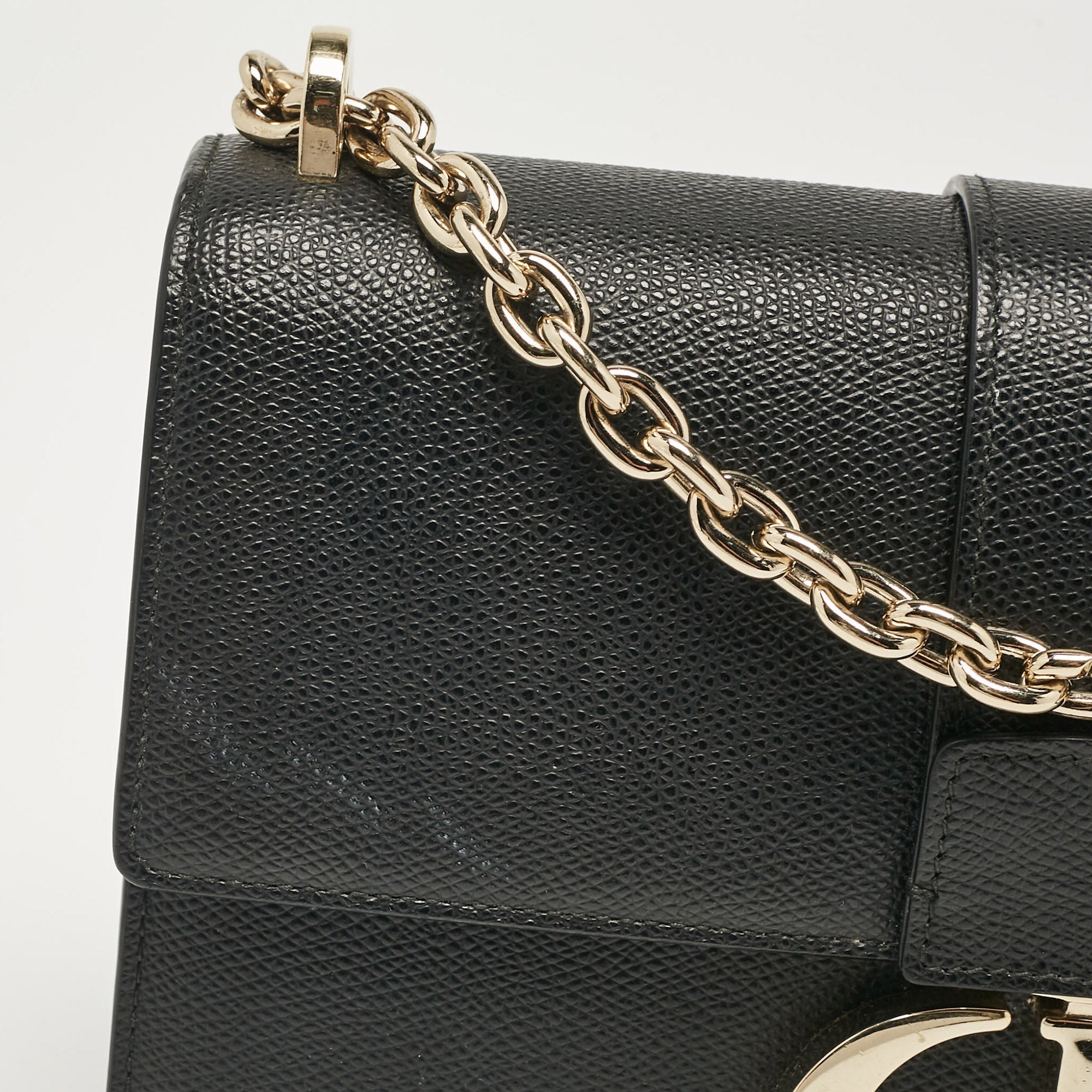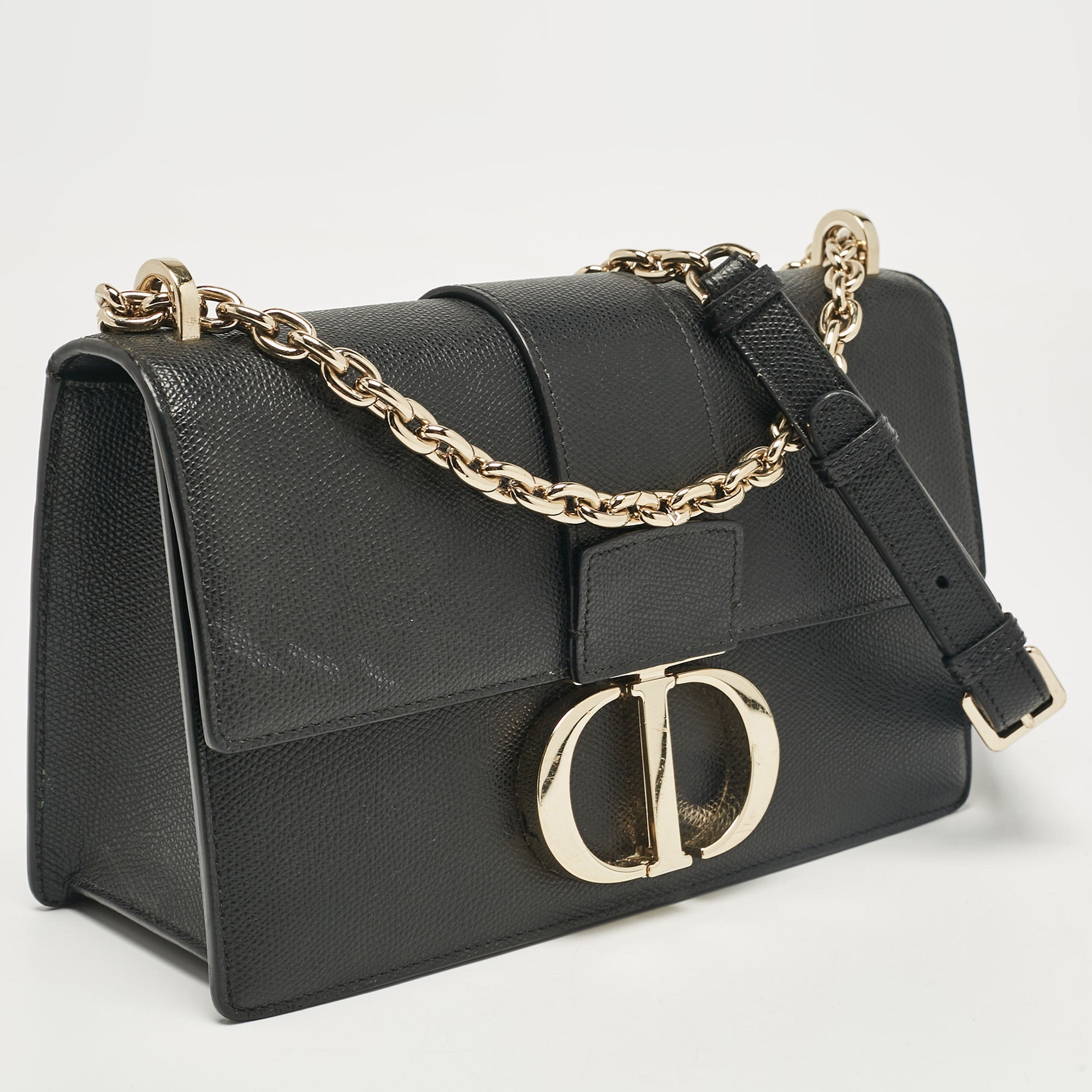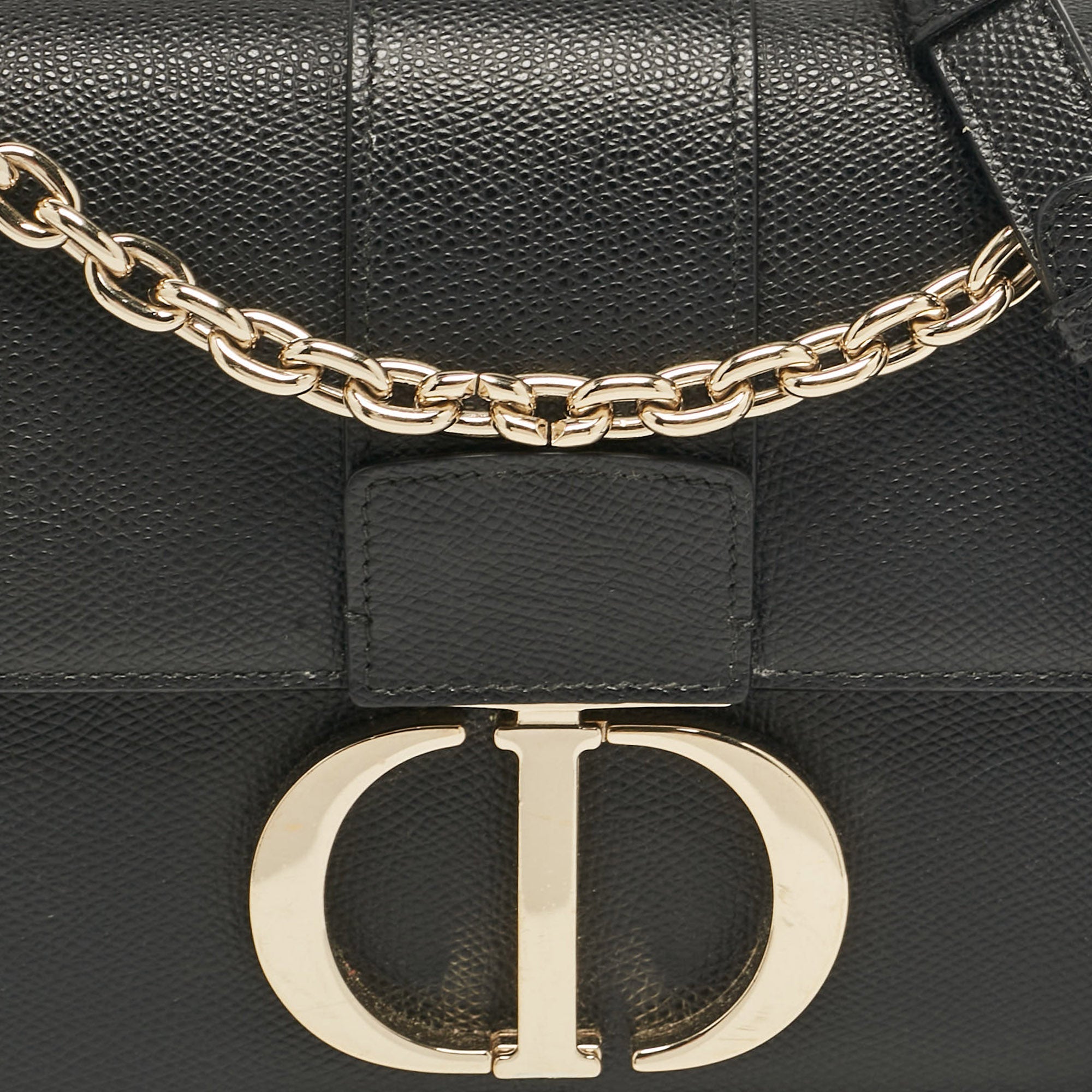 A fine collaboration of historical inspiration artisanal savoir faire and signature brand aesthetic this Montaigne 30 bag from Dior is a creation brimming with excellence and allure. This version displays an emerald black leather exterior with a gold toned CD motif attached to the front. This bag is completed with a leather lined interior.