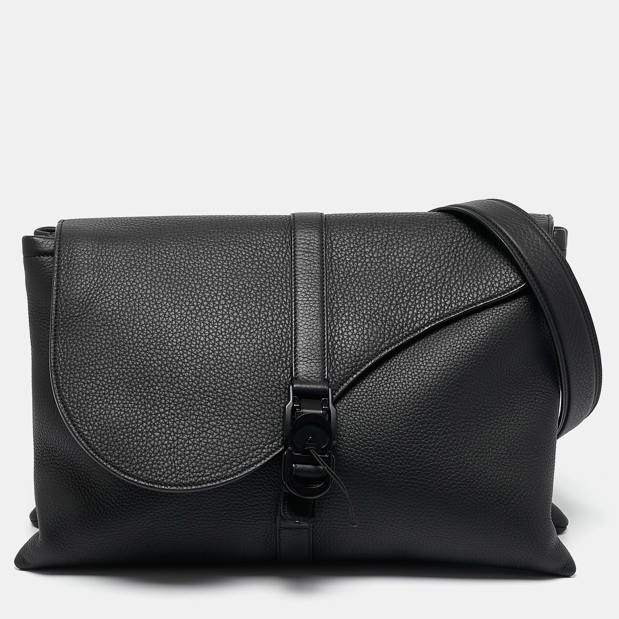 Soft yet structured Diors Pillow Bag in black leather is a modern statement piece offering both style and practicality.