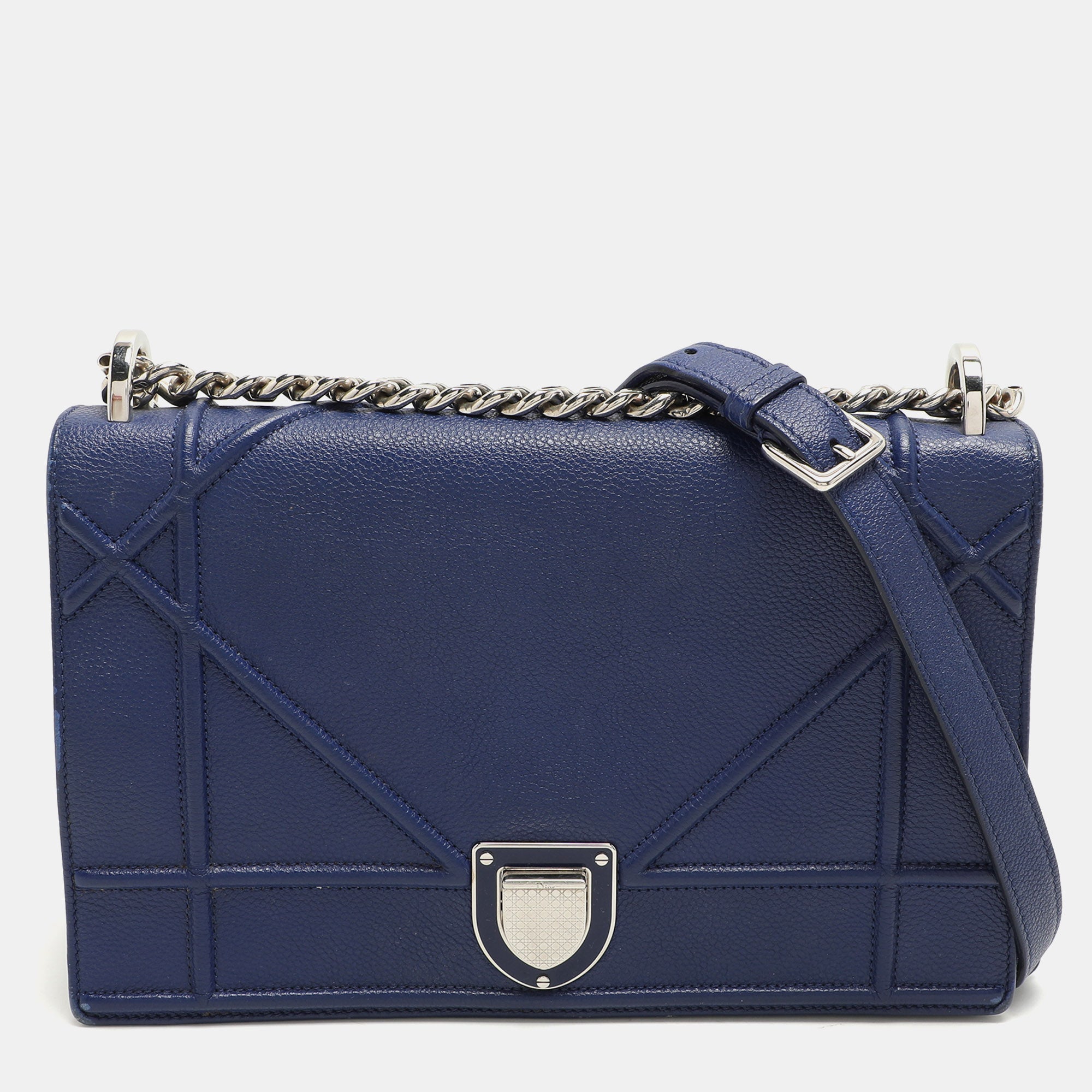 This Dior flap shoulder bag is an example of the brands fine designs that are skillfully crafted to project a classic charm. It is a functional creation with an elevating appeal.