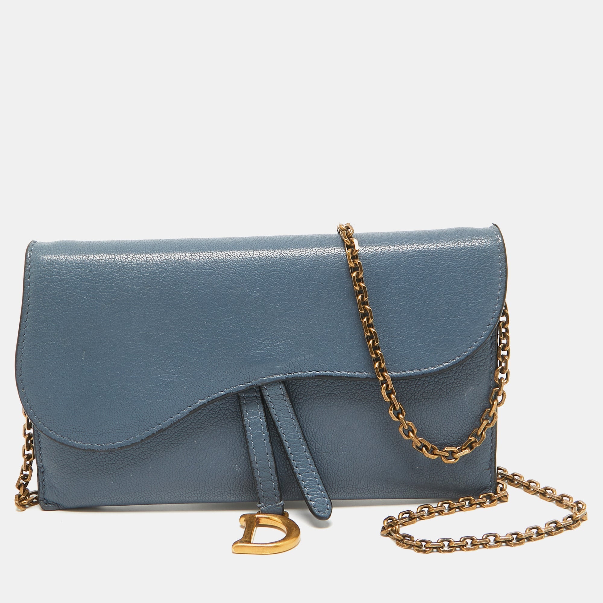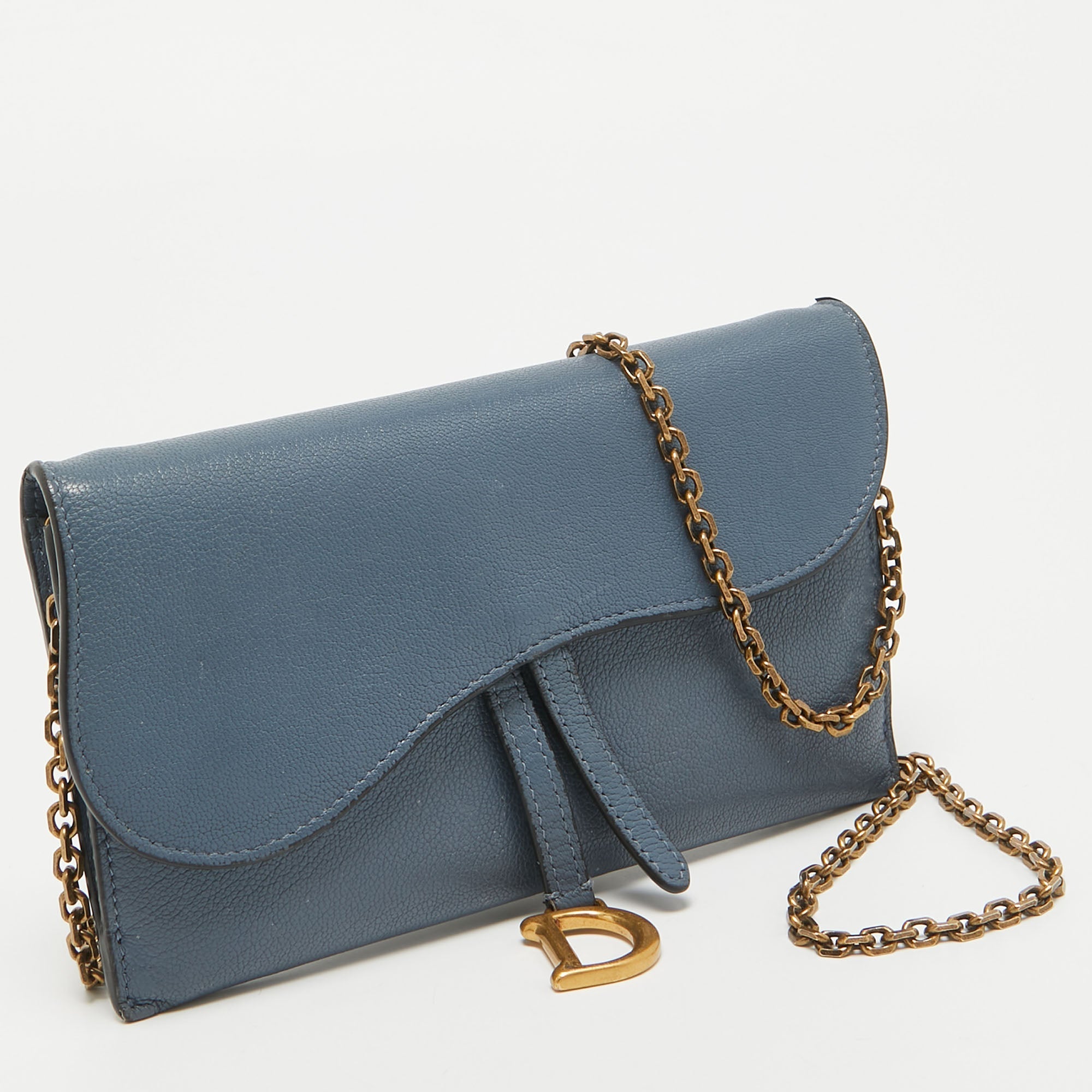 An example of timeless style and great design ideas Diors Saddle is sought after for all the right reasons. This WOC for women is crafted using leather and is impressive with its fashionable design. It has a dangling D letter in gold tone attached to the assymetrical front flap. Lined with leather and fabric it will keep your valuables in a stylish way.