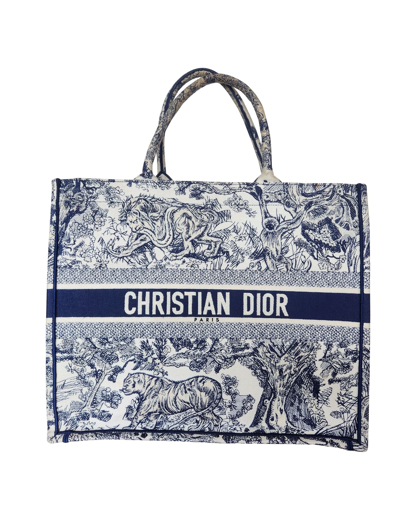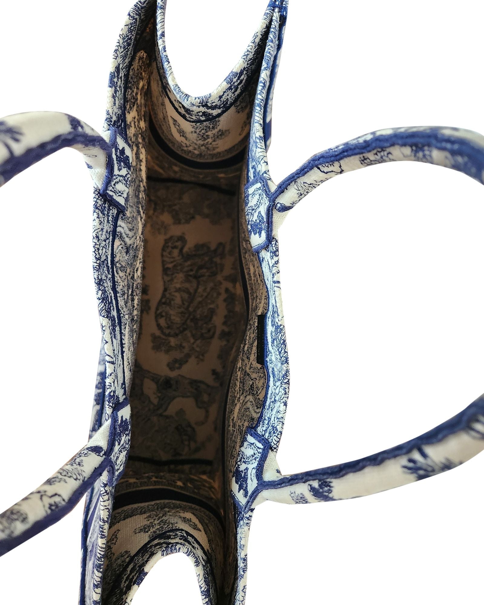Minimalist and elegant, this Dior Book tote bag is crafted from navy blue canvas featuring the exquisite toile de jouy print. Its simple open-top design offers a timeless appeal. With double rolled handles, it is the perfect everyday carry-all or shopping companion.Dior Book Small Tote Bag in Navy Blue CanvasCondition - Very good with dust bagSign of wear - Yellowing on handles, yellow stain at the backMaterial - CanvasColor - Blue | Navy blueDimensions - Width - 430 mmLength - 330 mmHeight - 170 mmSKU - 287134 / NAPBKGBBA282598W