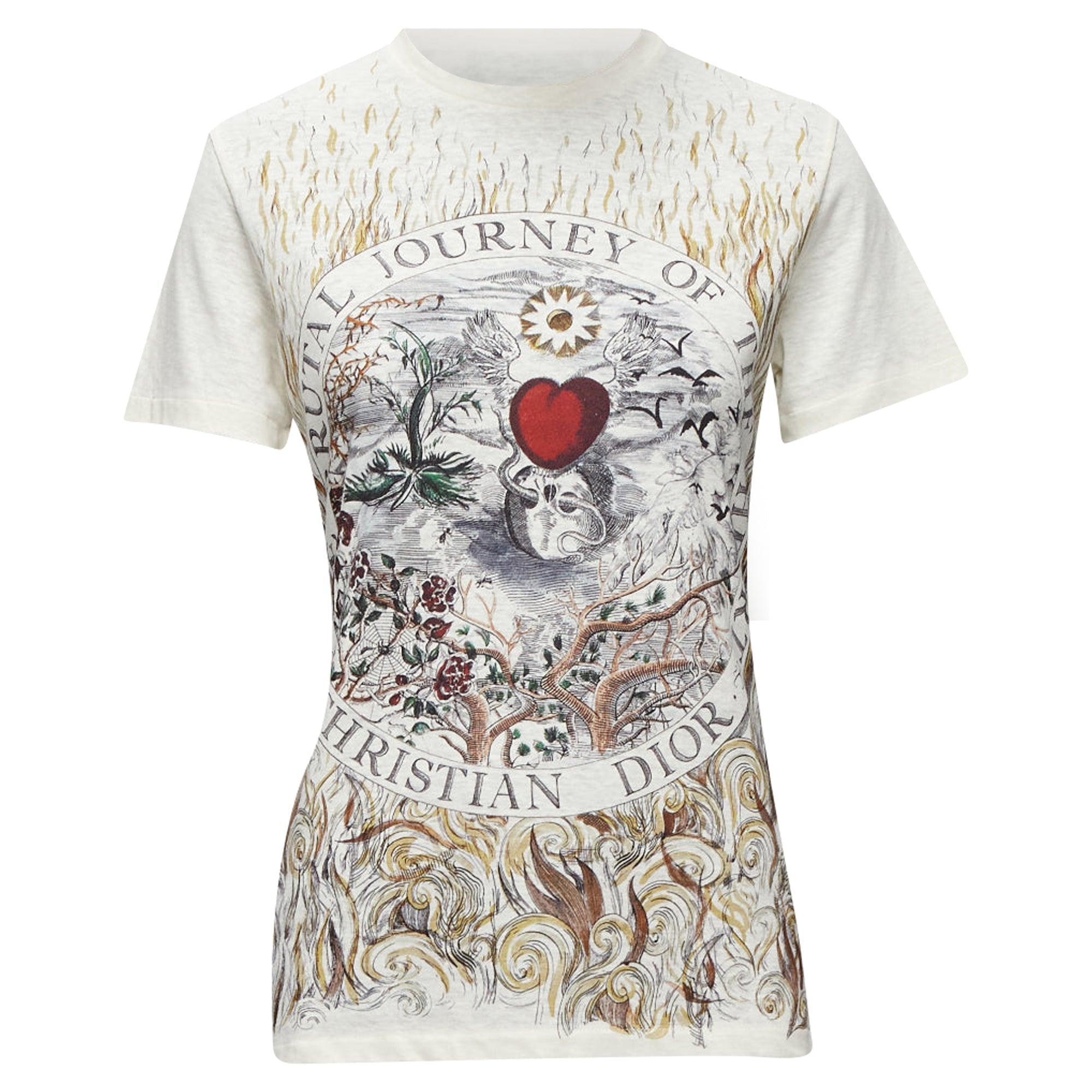 Dior Brutal Journey Of The Heart Graphic Print Ecru Cotton Linen Tshirt