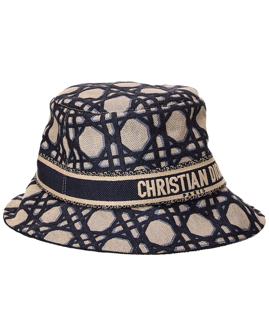 Introducing the 'Dior Bucket Hat' from the renowned brand Dior. This elegant and timeless French luxury accessory is perfect for adding a stylish touch to any outfit. Crafted in a navy/beige colorway, this bucket hat measures 6.5 inches from the top of the head to the hem. Made from 95% cotton and 5% polypropylene, this hat is designed for durability and style. This must-have accessory is made in Italy and should be dry cleaned only to maintain its quality. Please note that all measurements were taken by hand and are approximate, with slight variations that may occur. Rest assured that our products are , sourced from trusted independent suppliers to ensure . Elevate your headwear collection with the luxurious Dior Bucket Hat.