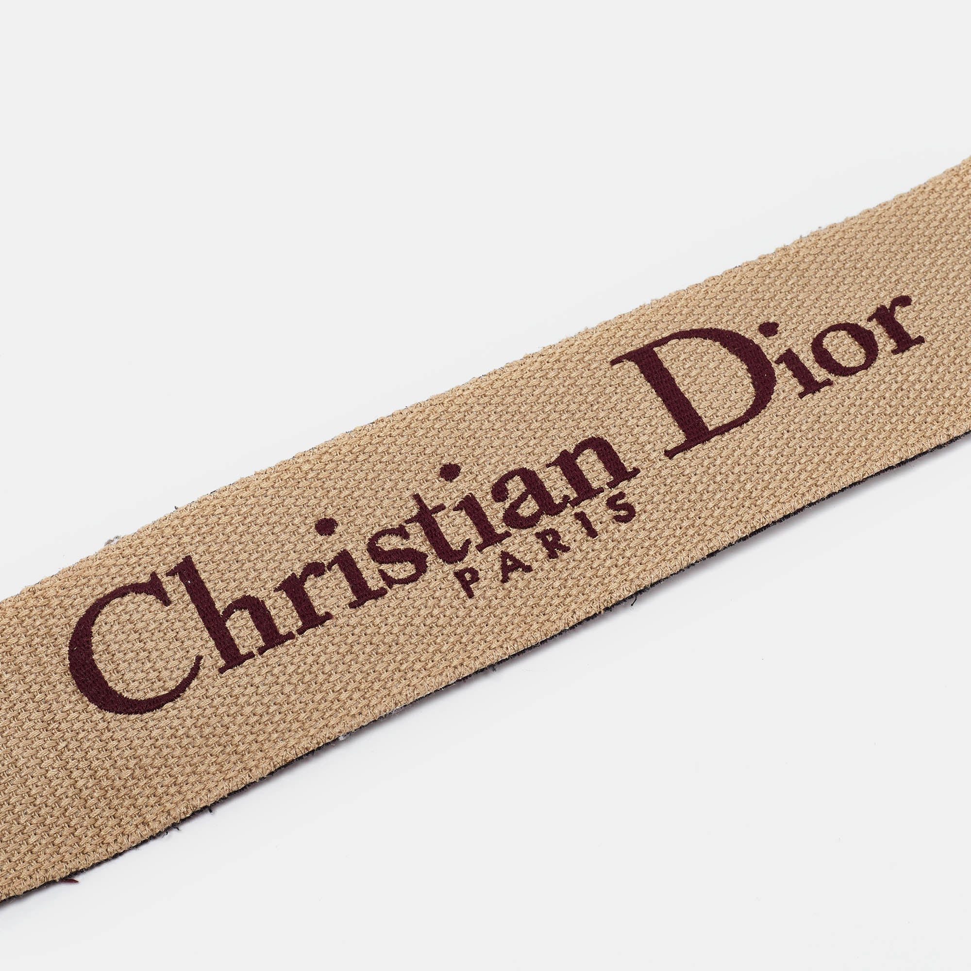 A Dior Book shoulder strap to transform the way you carry your loved bags. Crafted in canvas embroidered with iconic brand details and equipped with leather trims and gold tone metal clasps this accessory will complement and uplift any bag in your ensemble.