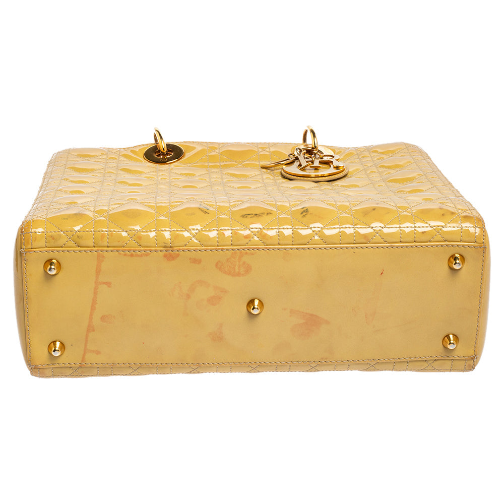 The Lady Dior tote is a Dior creation that has gained recognition worldwide and is today a coveted bag that every fashionista craves to possess. This tote has been crafted from patent leather and it carries the signature Cannage quilt. It is equipped with a nylon interior and two top handles. The gorgeous piece is complete with the classic Dior letter charms.