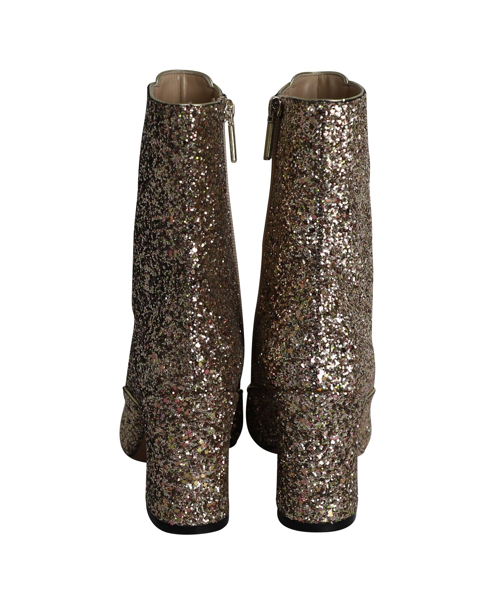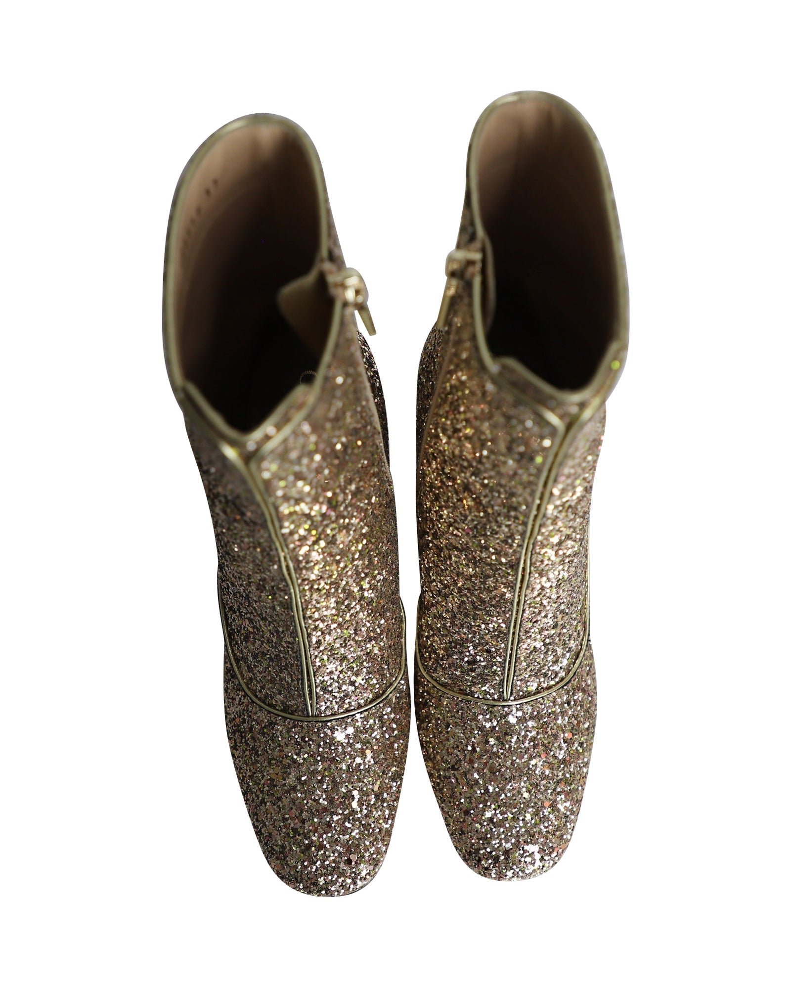 Add some dazzling sparkle to your outfit this season in Dior's D-Circus ultra-glitter ankle boots. The gold glitter uppers are set on a mid-high block heel and feature a side zipper making them easy to slip on and off.Dior D-Circus Glitter Ankle Boots in Gold LeatherCondition - Very good with dust bagSign of wear - Moderate wear on the solesMaterial - LeatherColor - GoldSize - IT37 / US7SKU - 283988