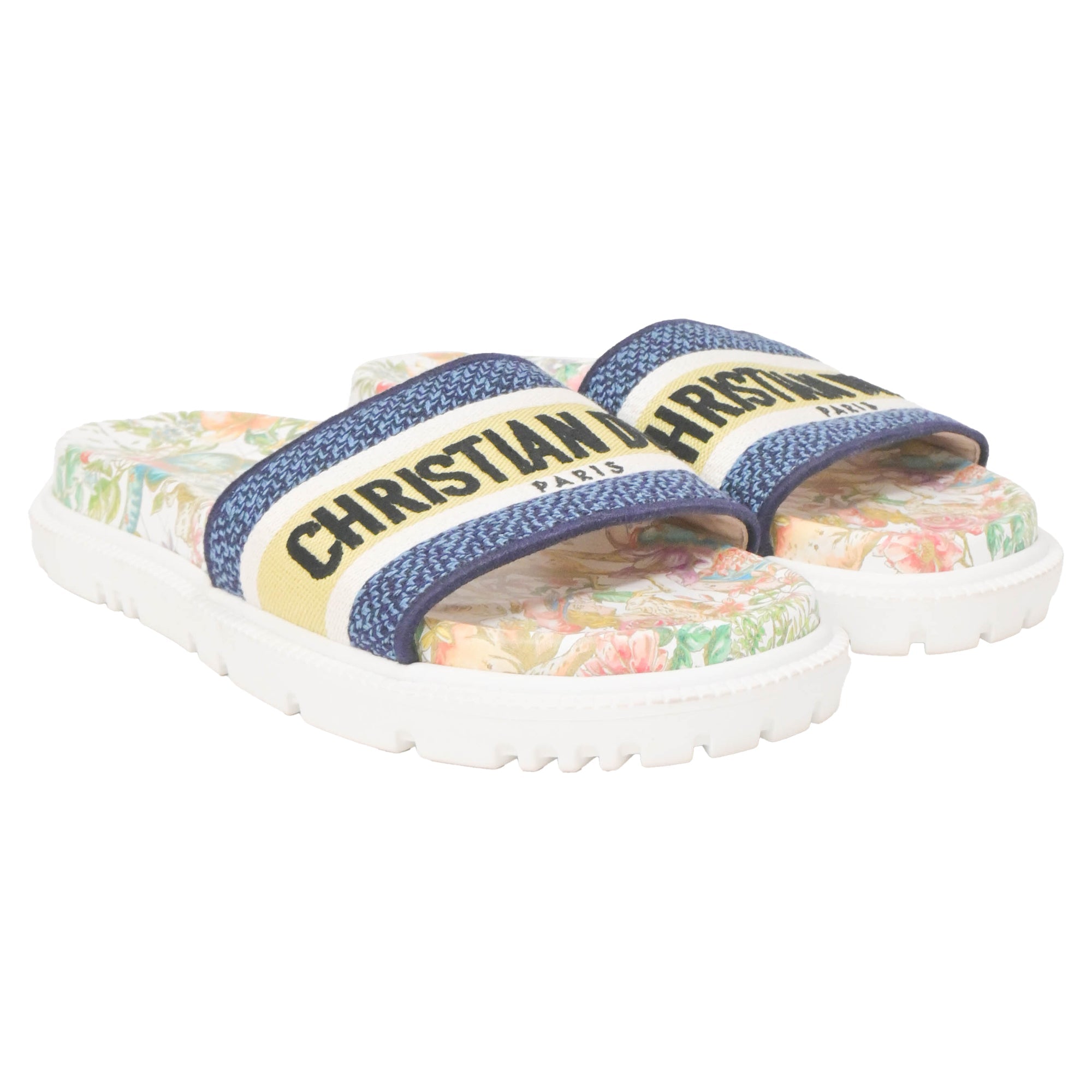 Dior D-Constellation Embroidered Dway 10mm Slides in Multicolor Canvas