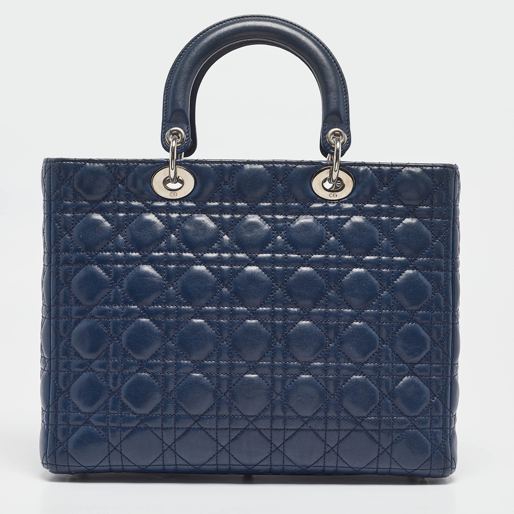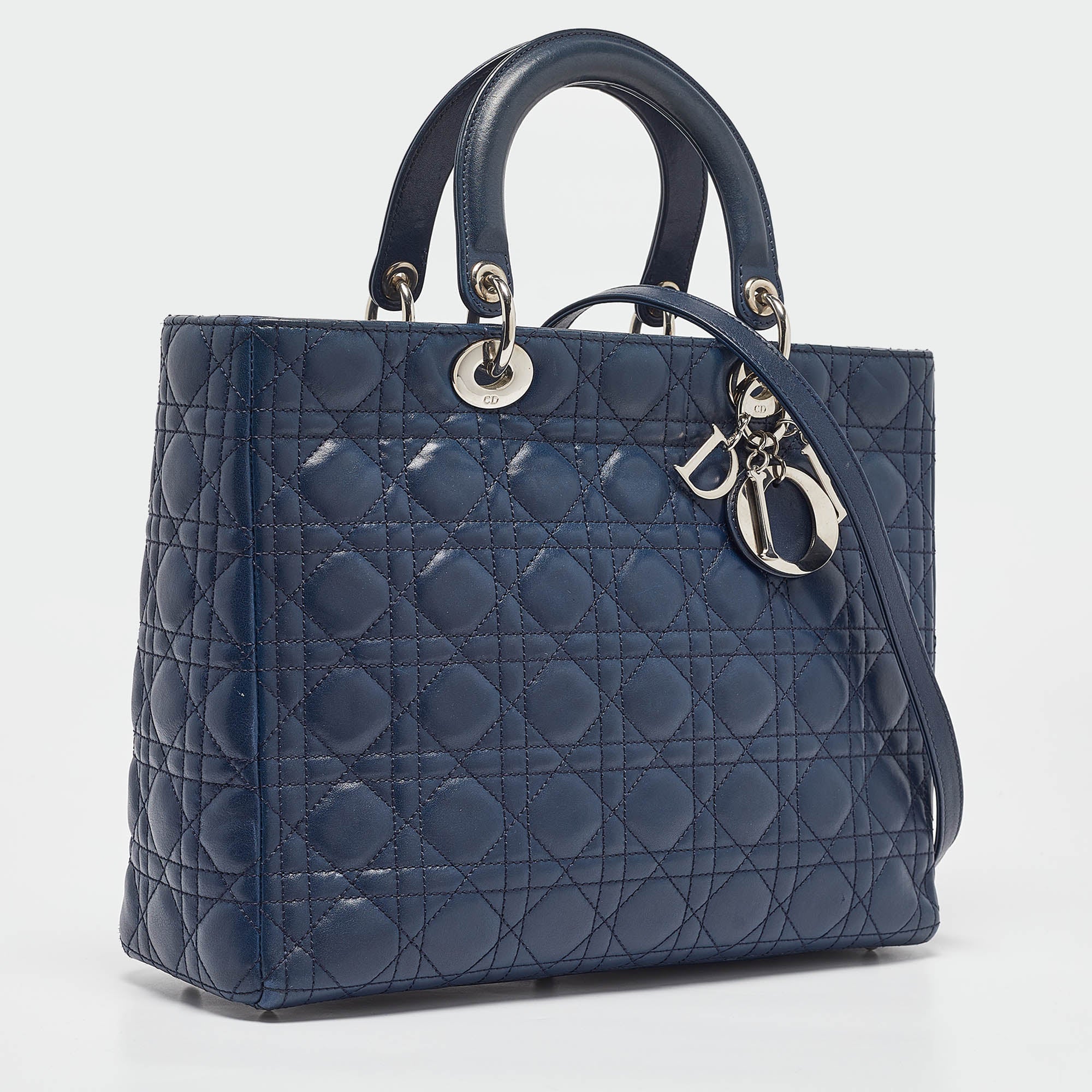 A timeless status and great design mark the Lady Dior tote. It is an iconic bag that people continue to invest in to this day. We have here this classic beauty crafted from Cannage leather. The bag has a lined interior for your essentials. This Lady Dior is complete with two top handles a shoulder strap and Dior letter charms.