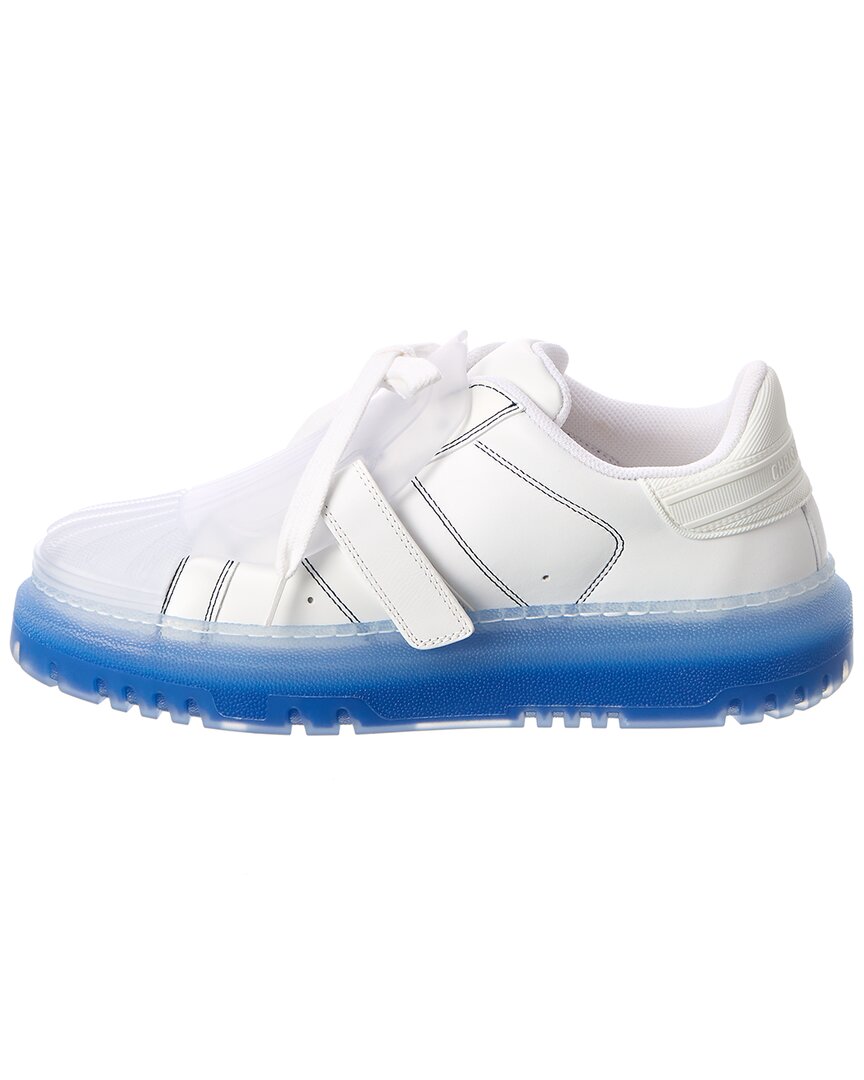 - Dior-Id Leather Sneaker In White Leather With Velcro Strap, Rubber Detailing And Transparent Blue Rubber Sole