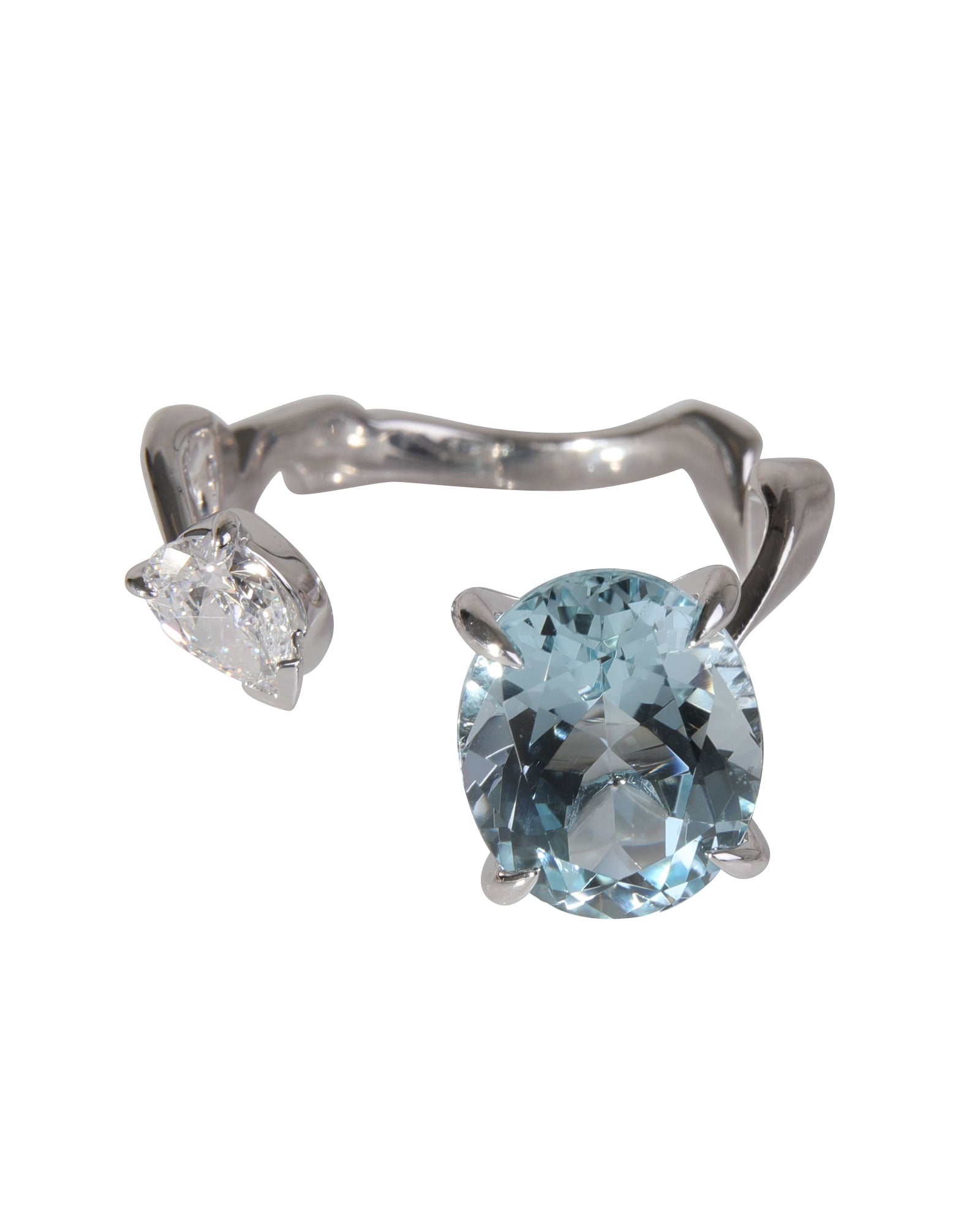 Dior Diorama Precieuse Diamond Aquamarine Ring in 18k White Gold D VS1 0.33 CTW