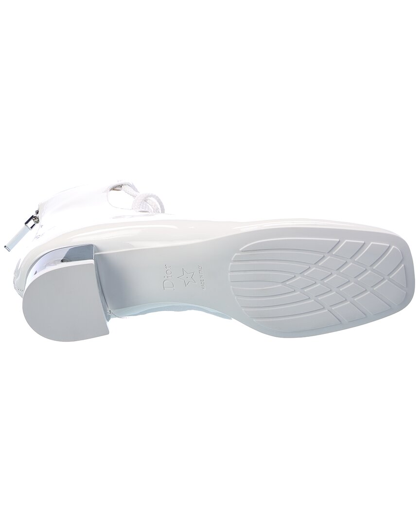 Elevate your look with the Dior Diorarty Patent Pump from the renowned French luxury brand, Dior. Made in Italy, these pumps feature white patent leather with silver-tone hardware, lace-up accents, and a transparent heel for a modern touch. The center back zip-up closure ensures a secure fit, while the lightly padded leather insole provides comfort. With a smooth man-made sole and 1.25-inch heel, these pumps are both stylish and practical. Please note that size selections are European, so be sure to reference the size chart for US conversions. Whether you're dressing up for a special occasion or adding a luxe touch to your everyday ensemble, these Dior pumps are sure to make a statement. Shop with confidence knowing that all our products are .