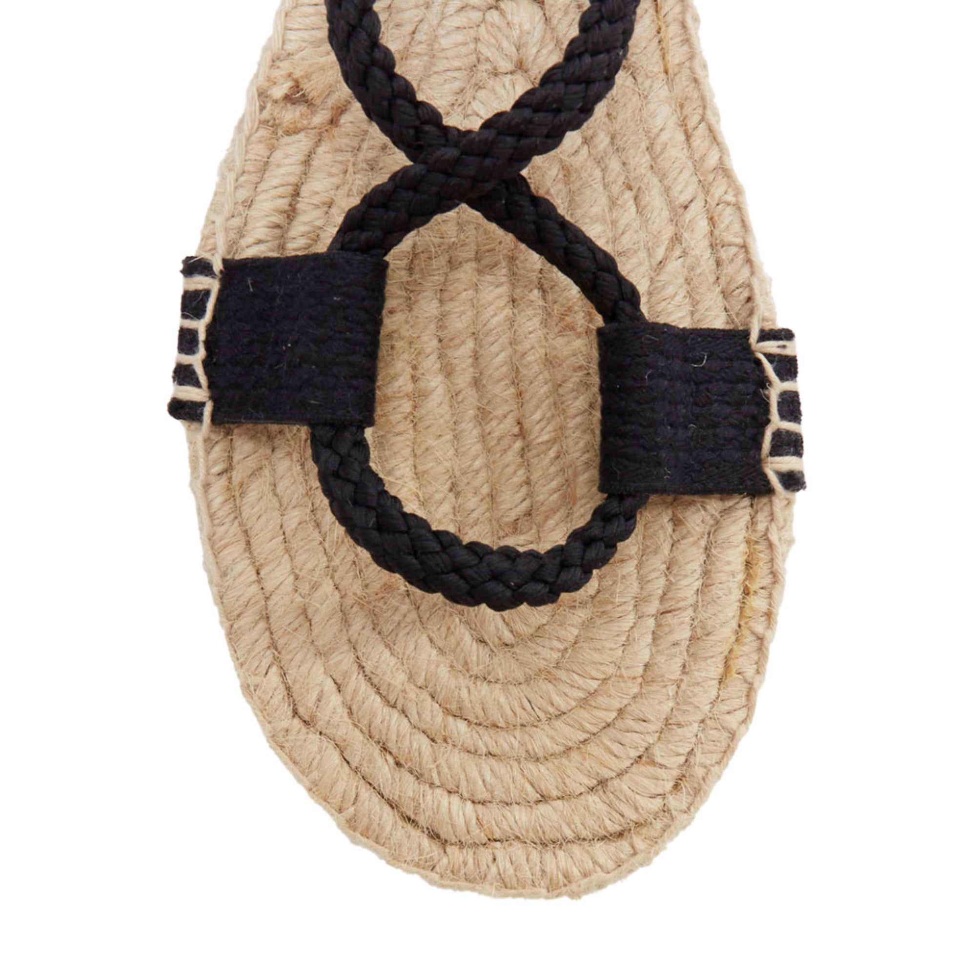 Extra Details - CHRISTIAN DIOR Cotton Embroidered Diorexpress Rope Sandals in black. These gorgeous sandals are embroidered cotton and feature a black rope wrap-around strap.