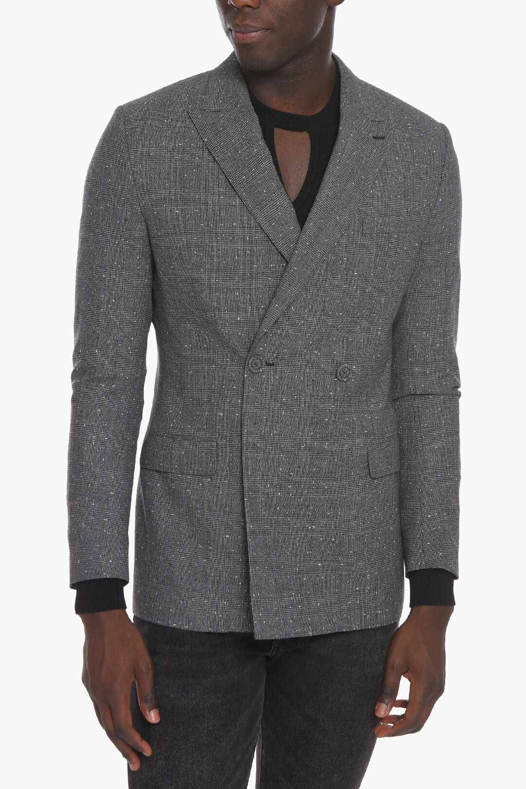 Autumn-Winter, Long sleeves, Lined, Checked design, Breast pocket, Pockets, Inner pocket, Double-breasted jacket, Made in Italy, Rear slit, Grey, Single Pieces, P534837
